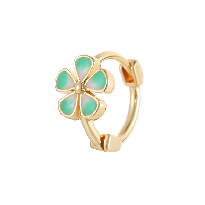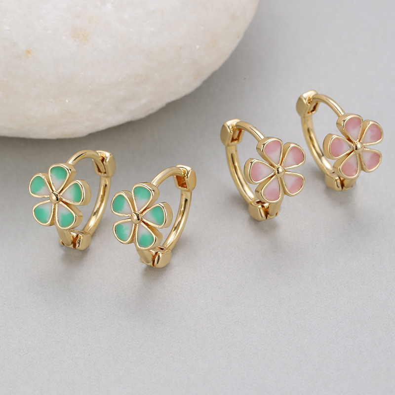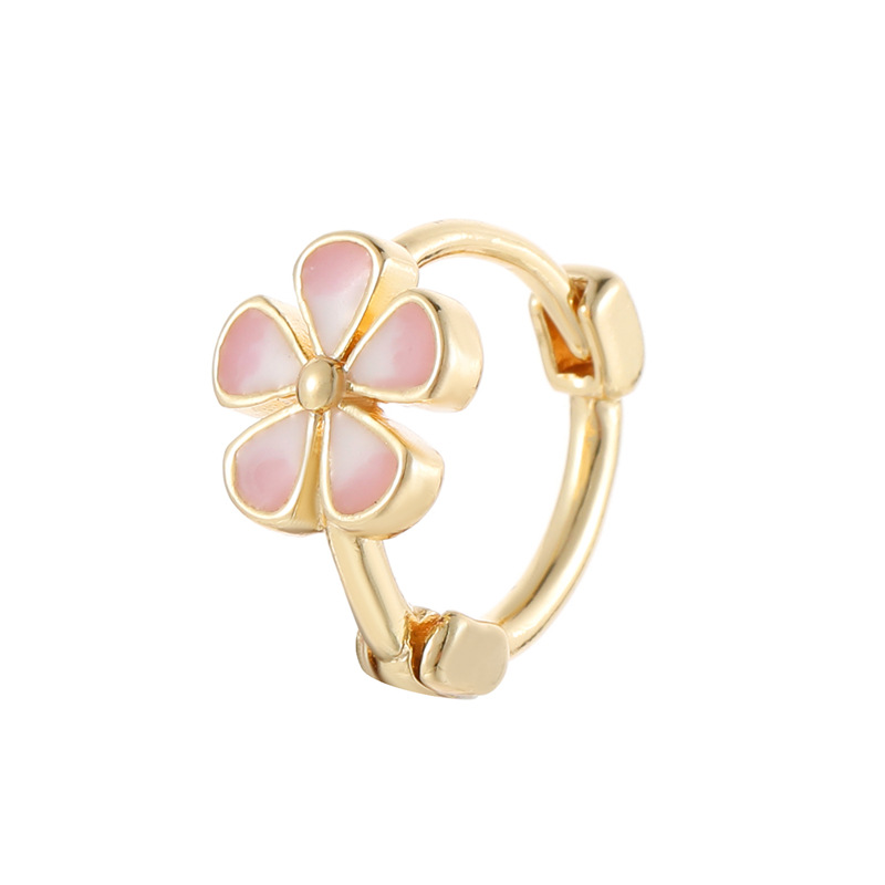 Latón Huggie pendiente del aro, metal, Flor, chapado en color dorado, para mujer & esmalte, más colores para la opción, Vendido por Par