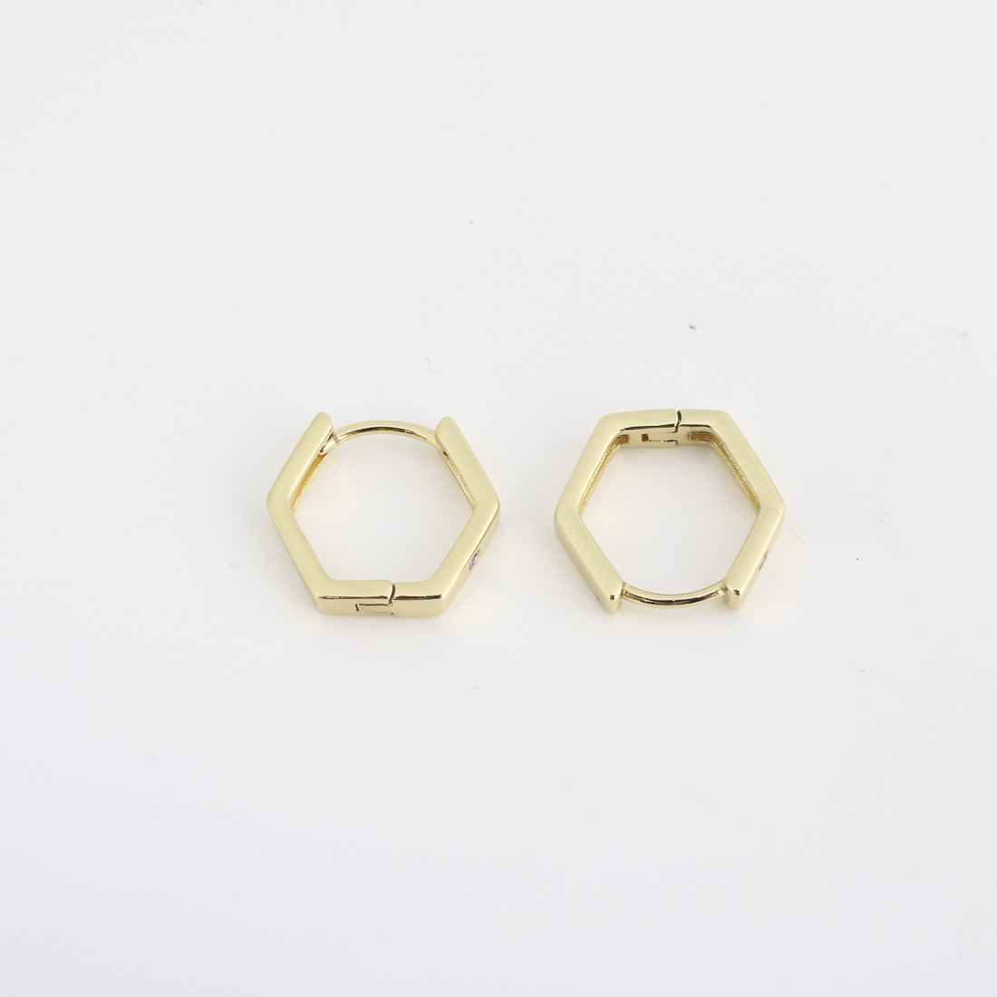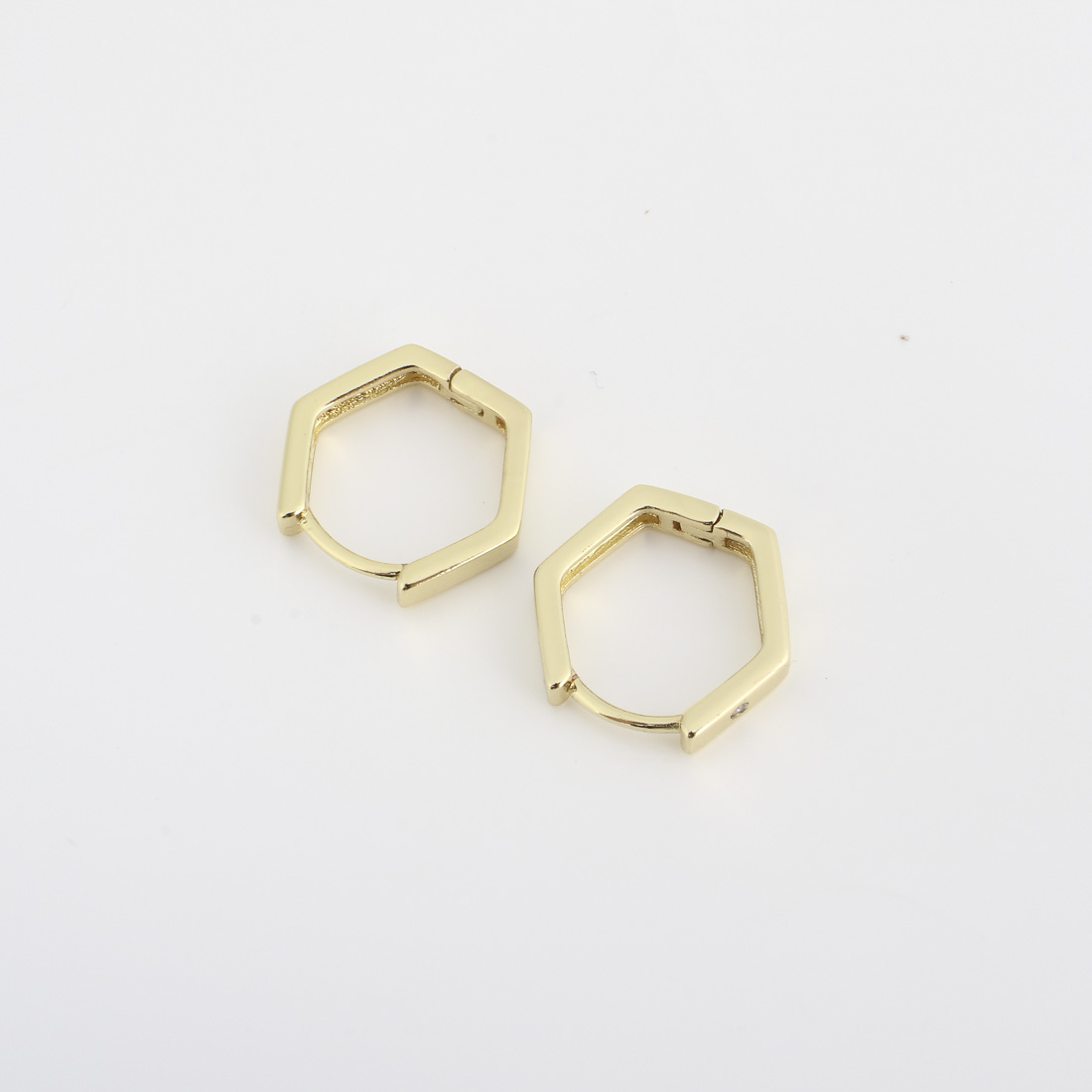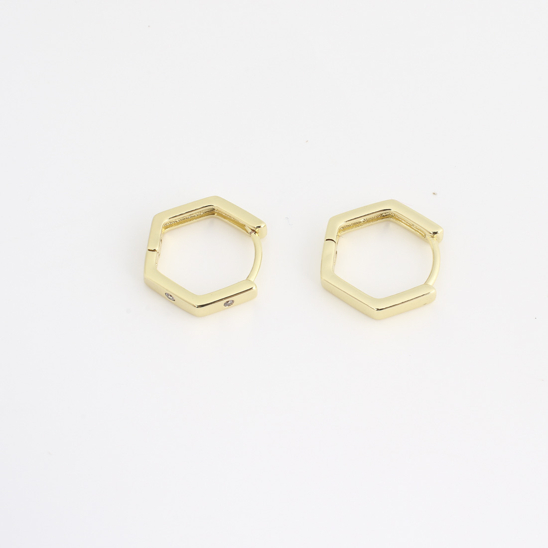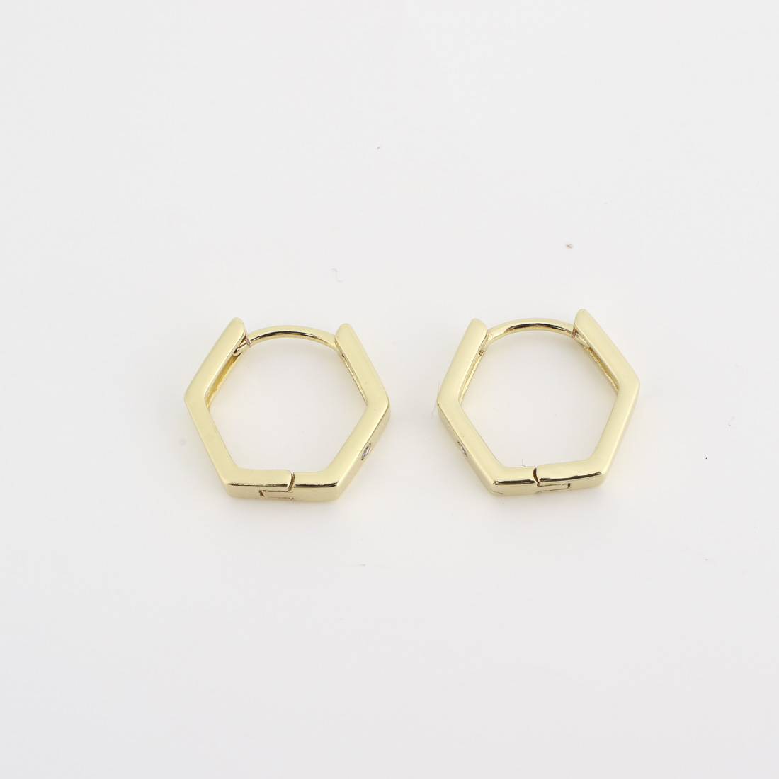 Latón Huggie pendiente del aro, metal, chapado en oro real, con circonia cúbica, 8x15x16mm, Vendido por Par