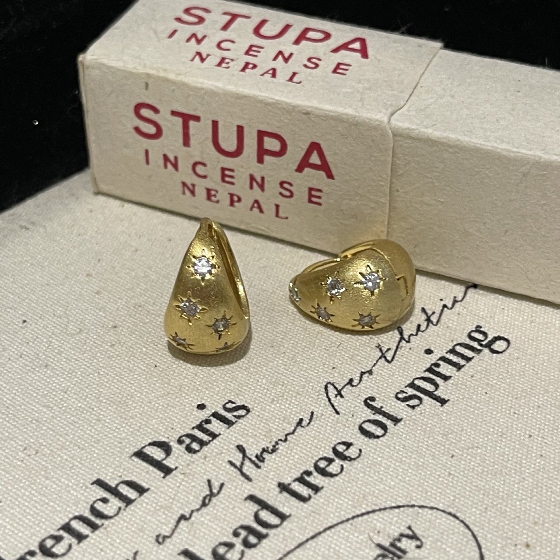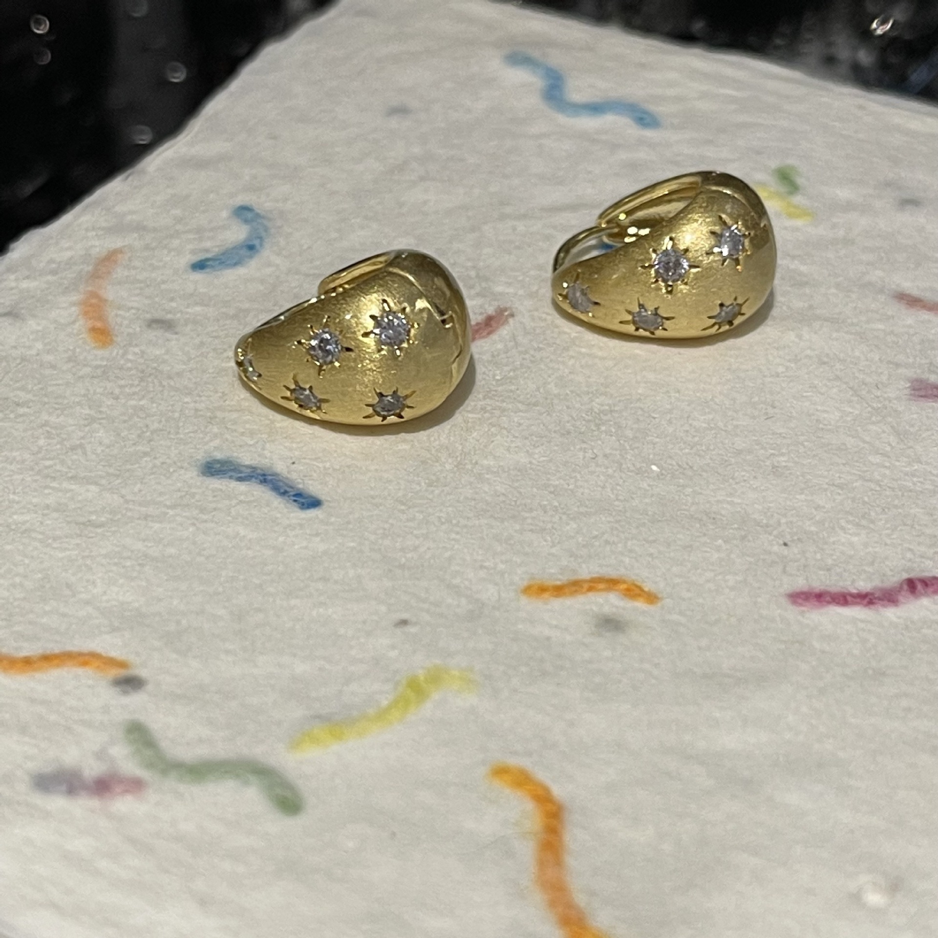 Latón Huggie pendiente del aro, metal, chapado en oro real, con circonia cúbica & facetas, 12x16x21mm, Vendido por Par