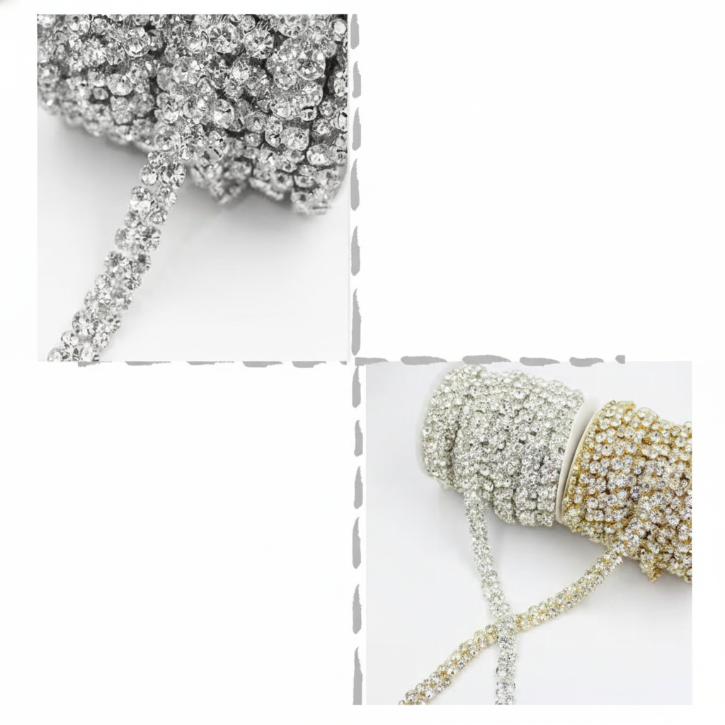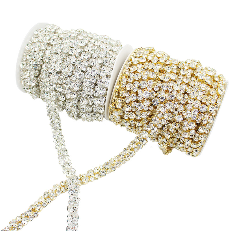 Brass Rhinestone Claw cadena, metal, con diamantes de imitación, libre de cadmio, 3mm, aproximado 10m/Grupo, Vendido por Grupo