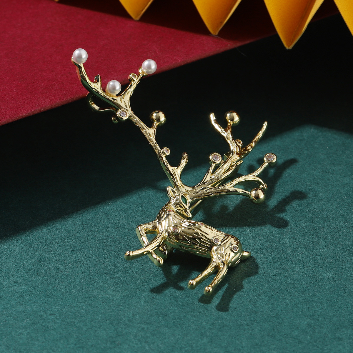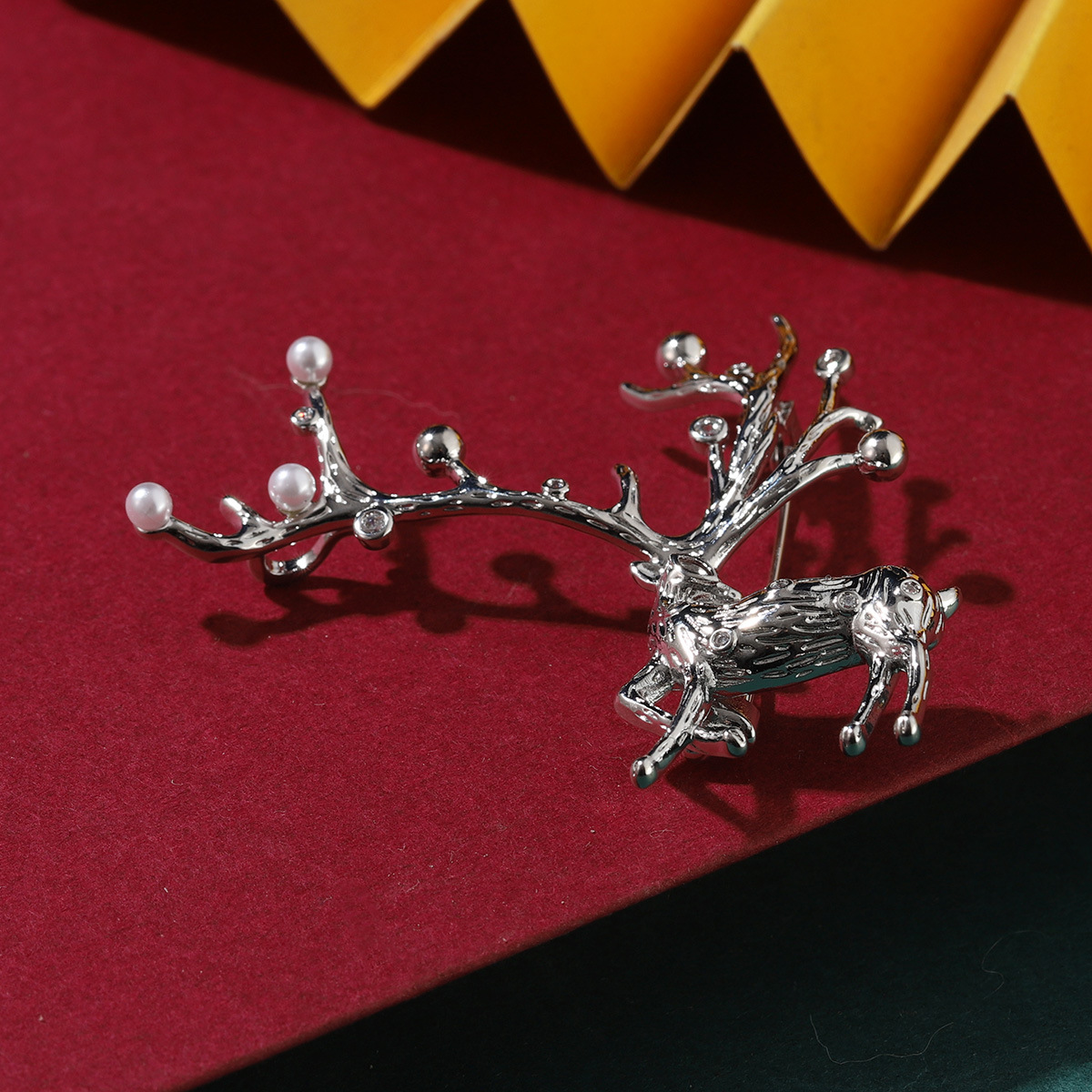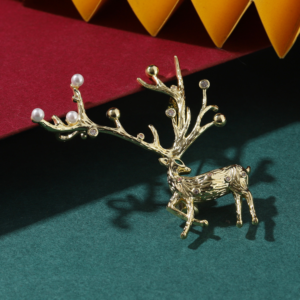 Broche Joyería Navidad, metal, con Perlas plásticas, Ciervo, chapado, Diseño de Navidad & unisexo & micro arcilla de zirconia cúbica, Vendido por UD