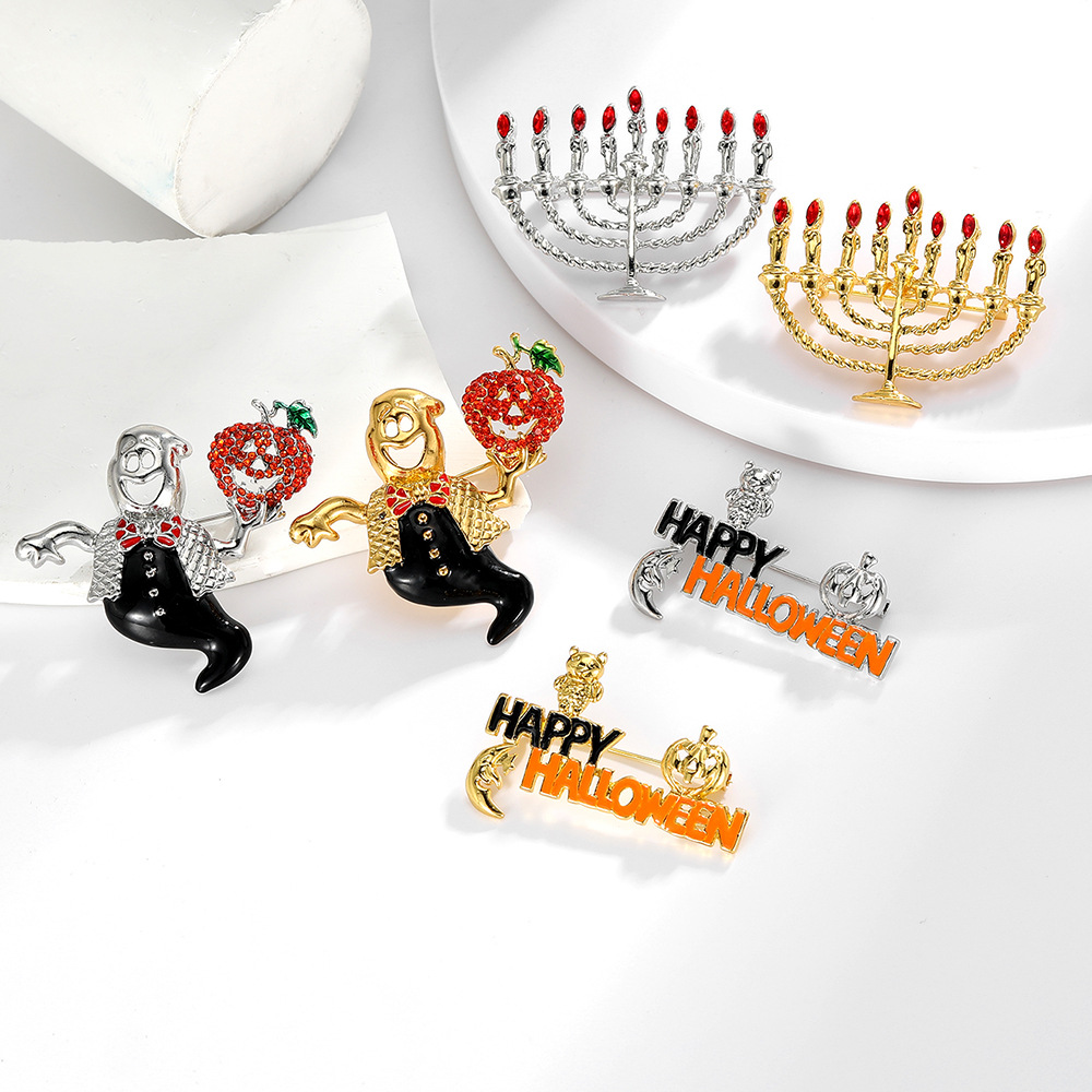 Broche de Halloween, aleación de zinc, chapado, Diseño de Halloween & unisexo & diferentes estilos para la opción & esmalte & con diamantes de imitación, más colores para la opción, Vendido por UD