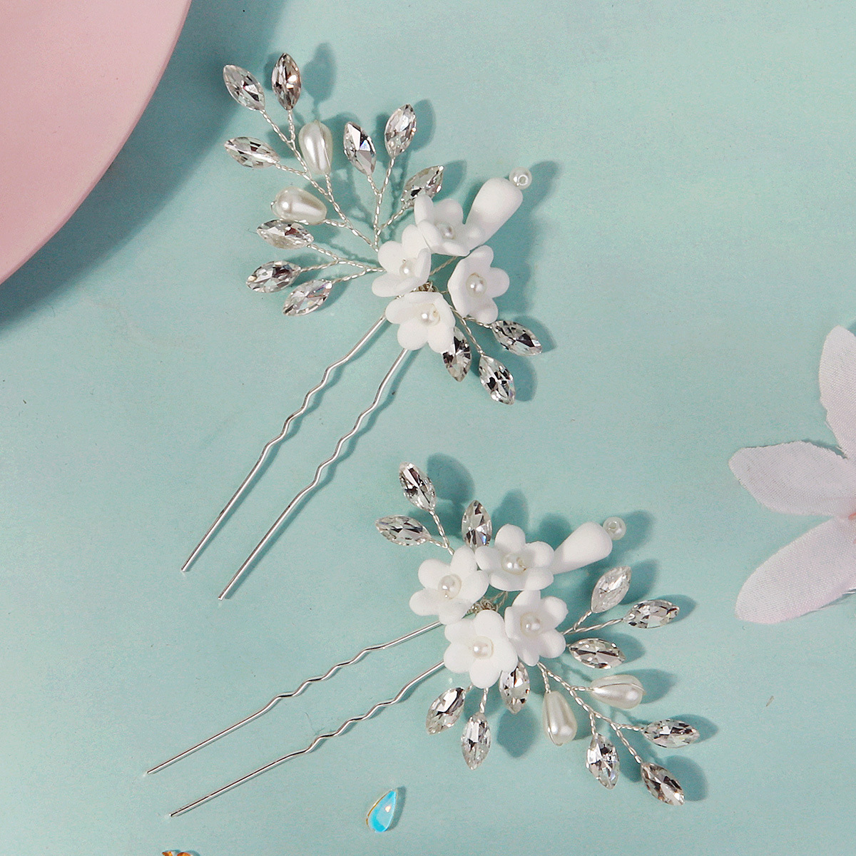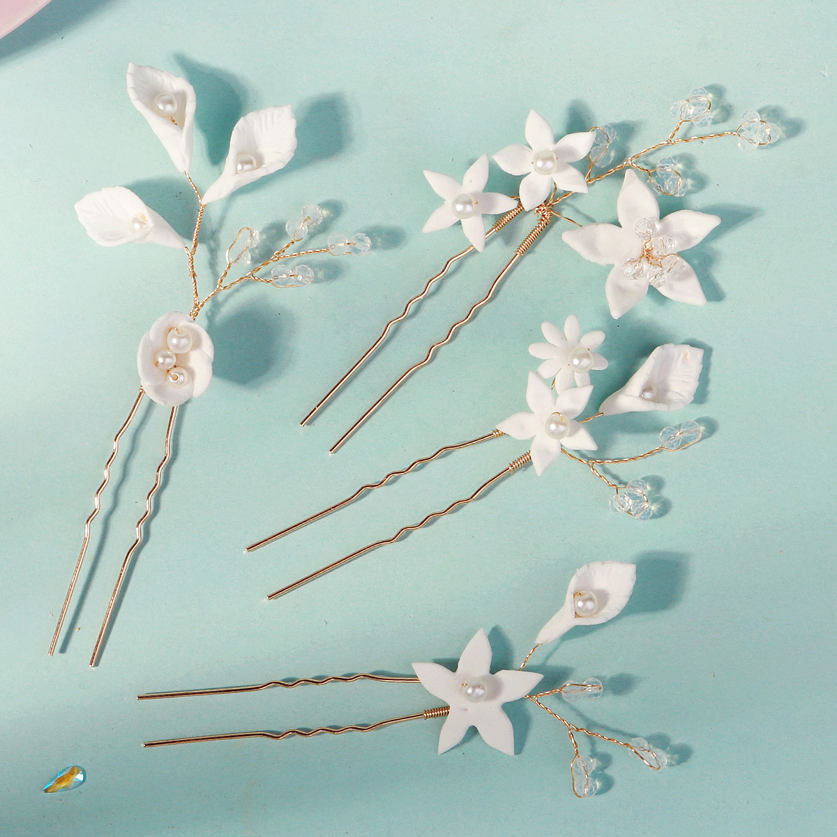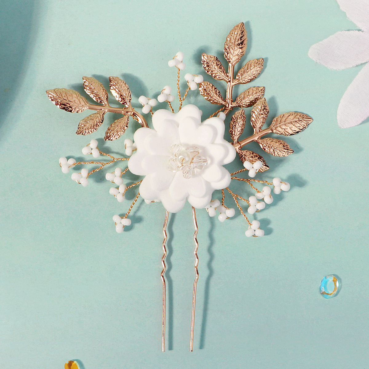 Palillos para el Cabello, Poliéster, con alambre de latón & Perlas plásticas & aleación de zinc & Acrílico, Flor, chapado, para novia & diverso tamaño para la opción & para mujer, más colores para la opción, Vendido por UD