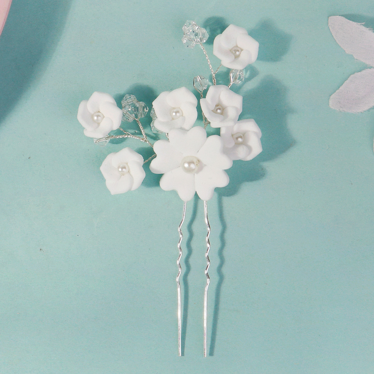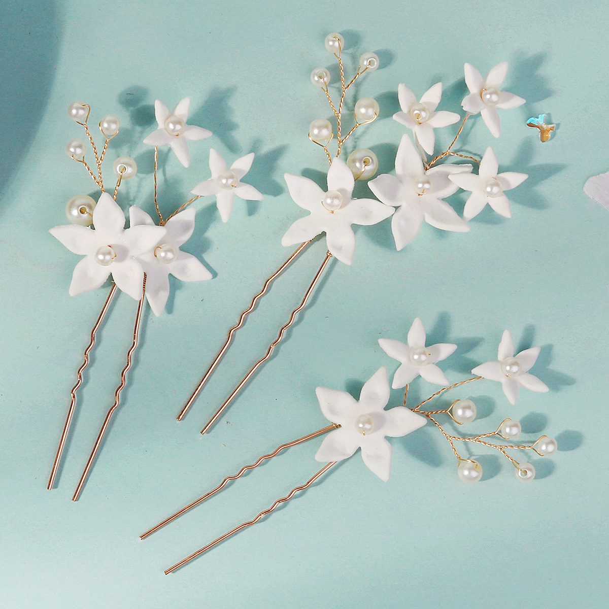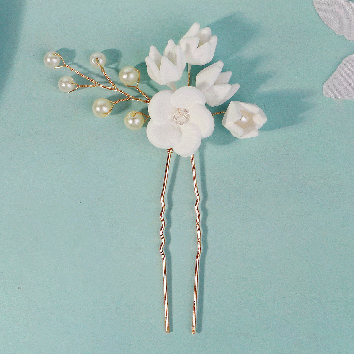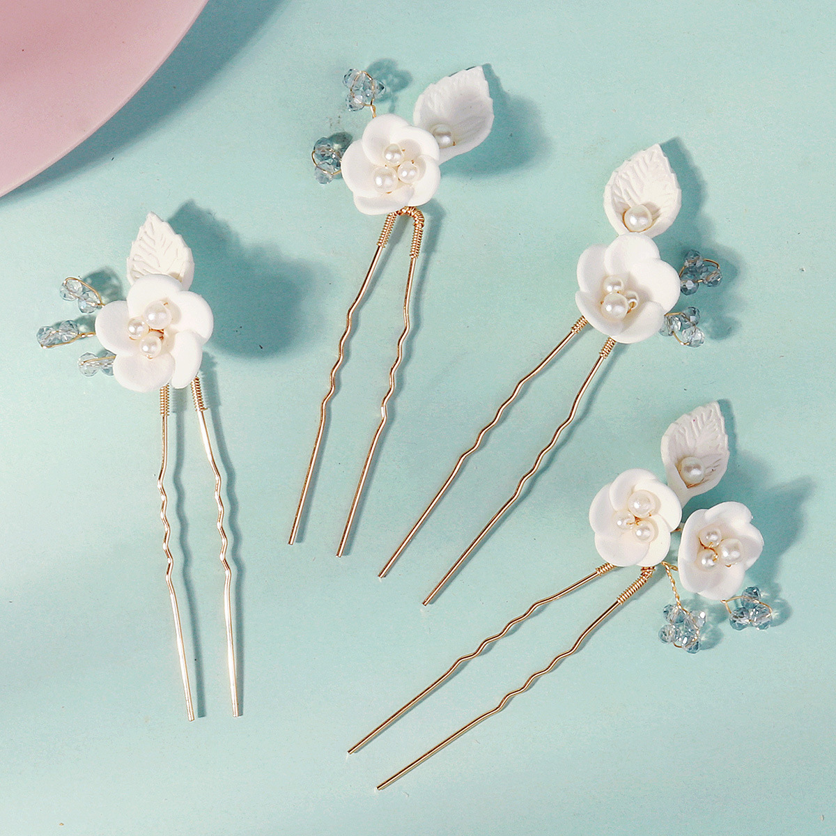 Palillos para el Cabello, Poliéster, con alambre de latón & Perlas plásticas & aleación de zinc & Acrílico, Flor, chapado, para novia & diverso tamaño para la opción & para mujer, más colores para la opción, Vendido por UD