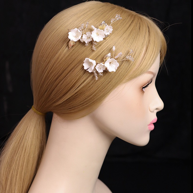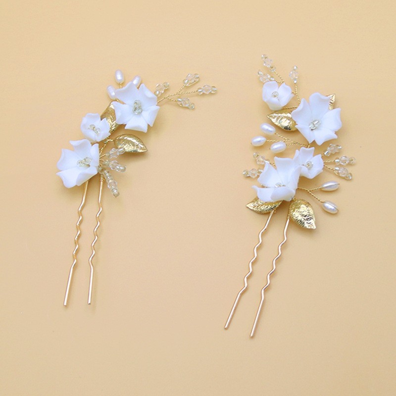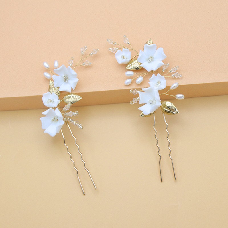 Palillos para el Cabello, aleación de zinc, con alambre de latón & Arcilla polimero & Cristal & Perlas plásticas, chapado, 2 piezas & hecho a mano & para mujer, dorado, 11x7mm, Vendido por Set
