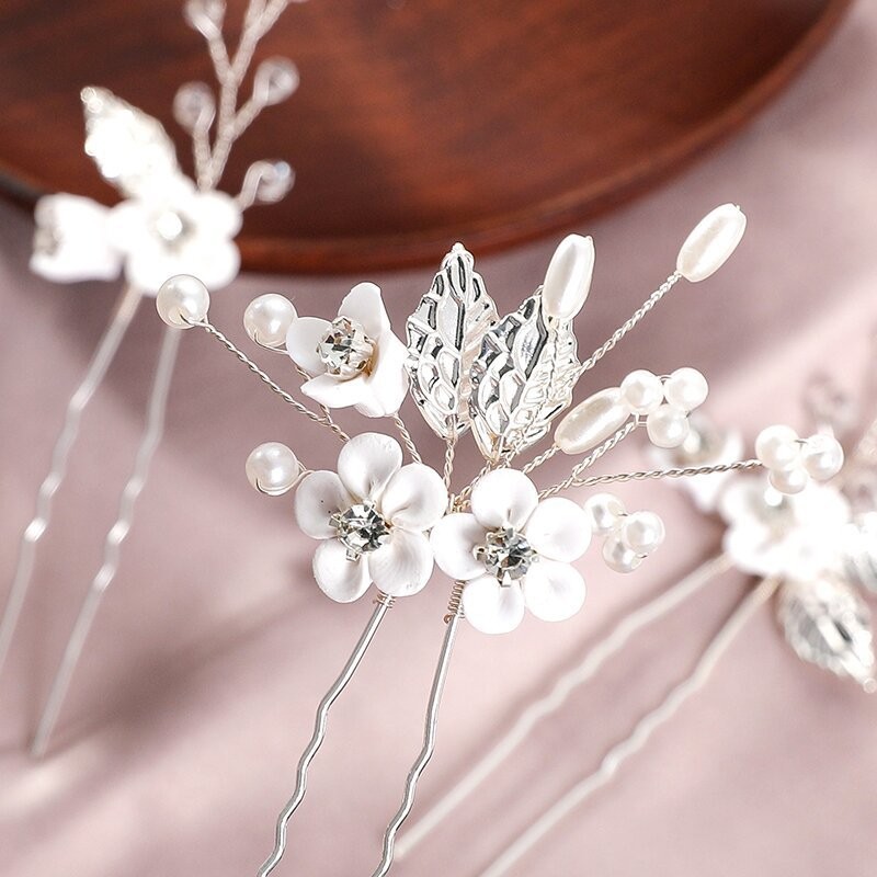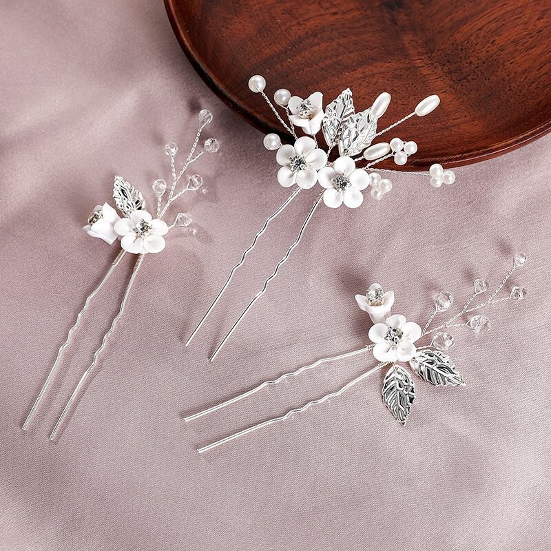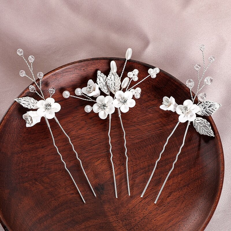 Palillos para el Cabello, aleación de zinc, con alambre de latón & Arcilla polimero & Cristal & Perlas plásticas, hecho a mano, tres piezas & Joyería & para mujer, plateado, 95x55x15mm, Vendido por Set