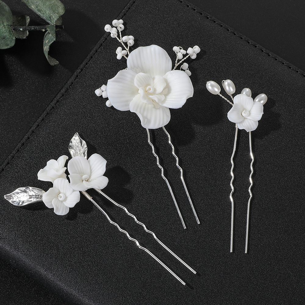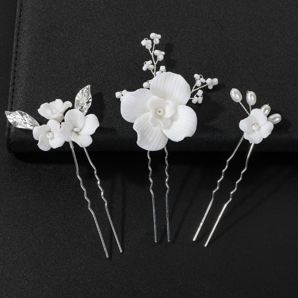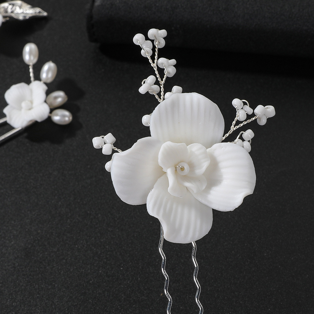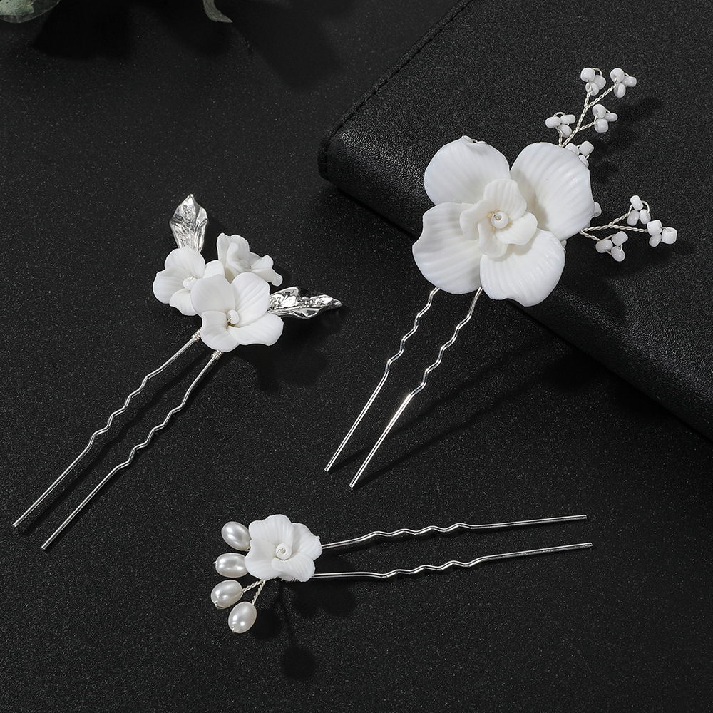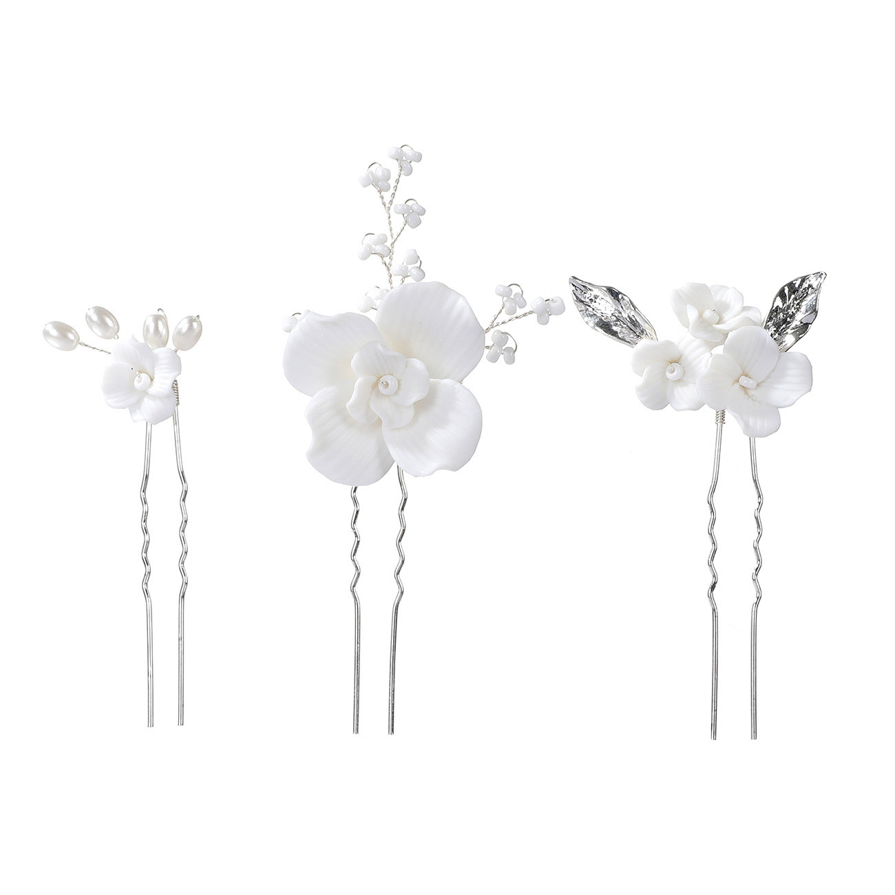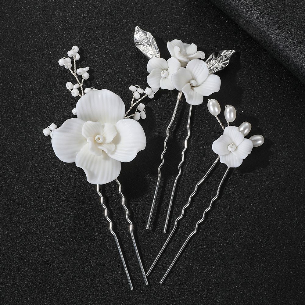 Palillos para el Cabello, aleación de zinc, con Seedbead & alambre de latón & Arcilla polimero & Perlas plásticas, hecho a mano, tres piezas & Joyería & para mujer, plateado, 130x80x20mm, Vendido por Set