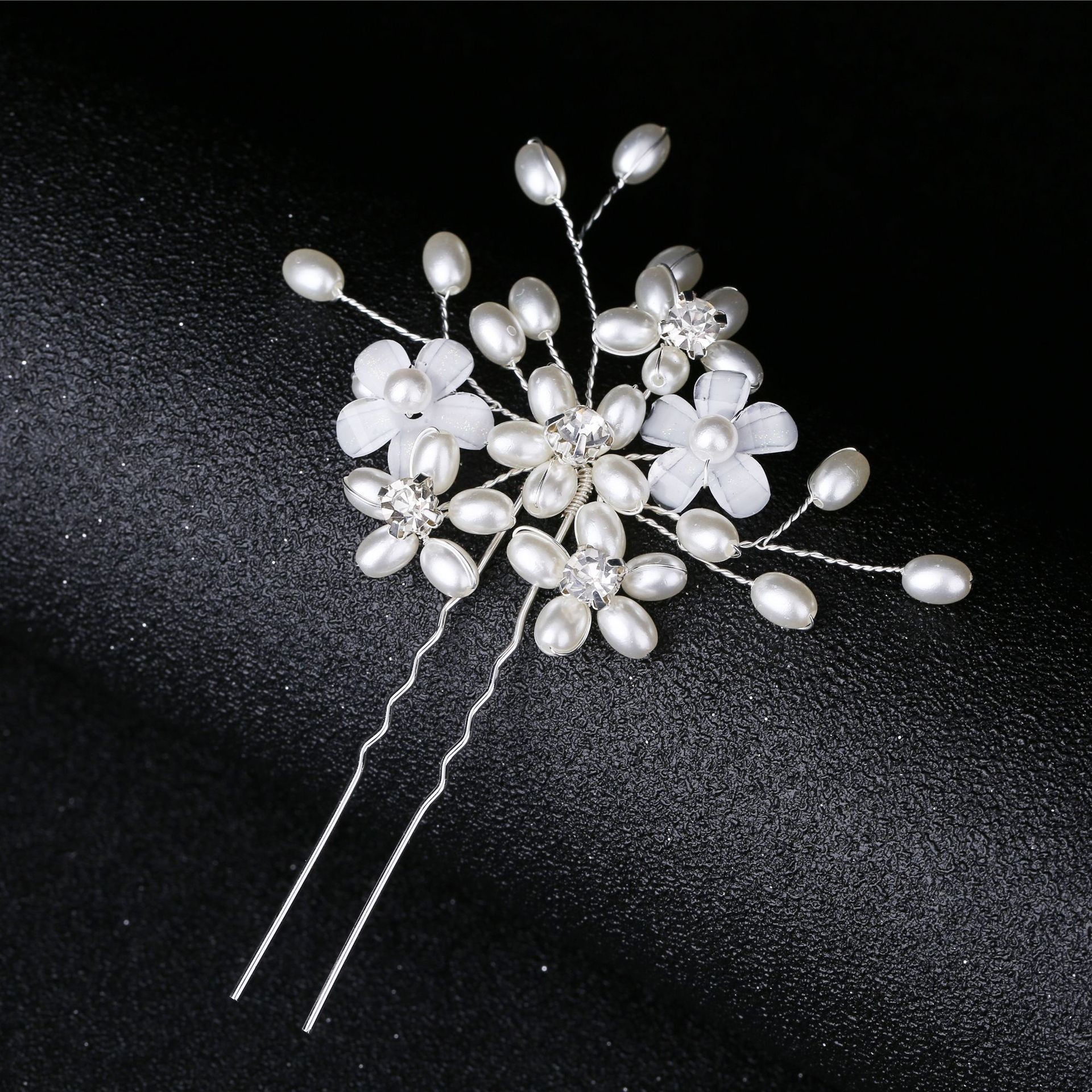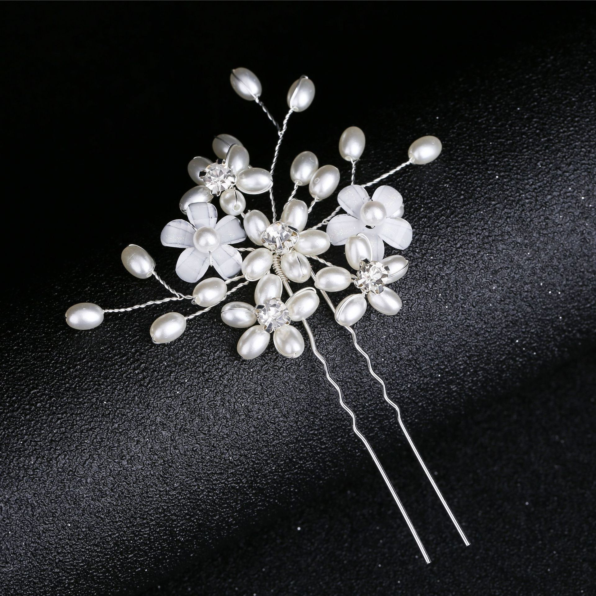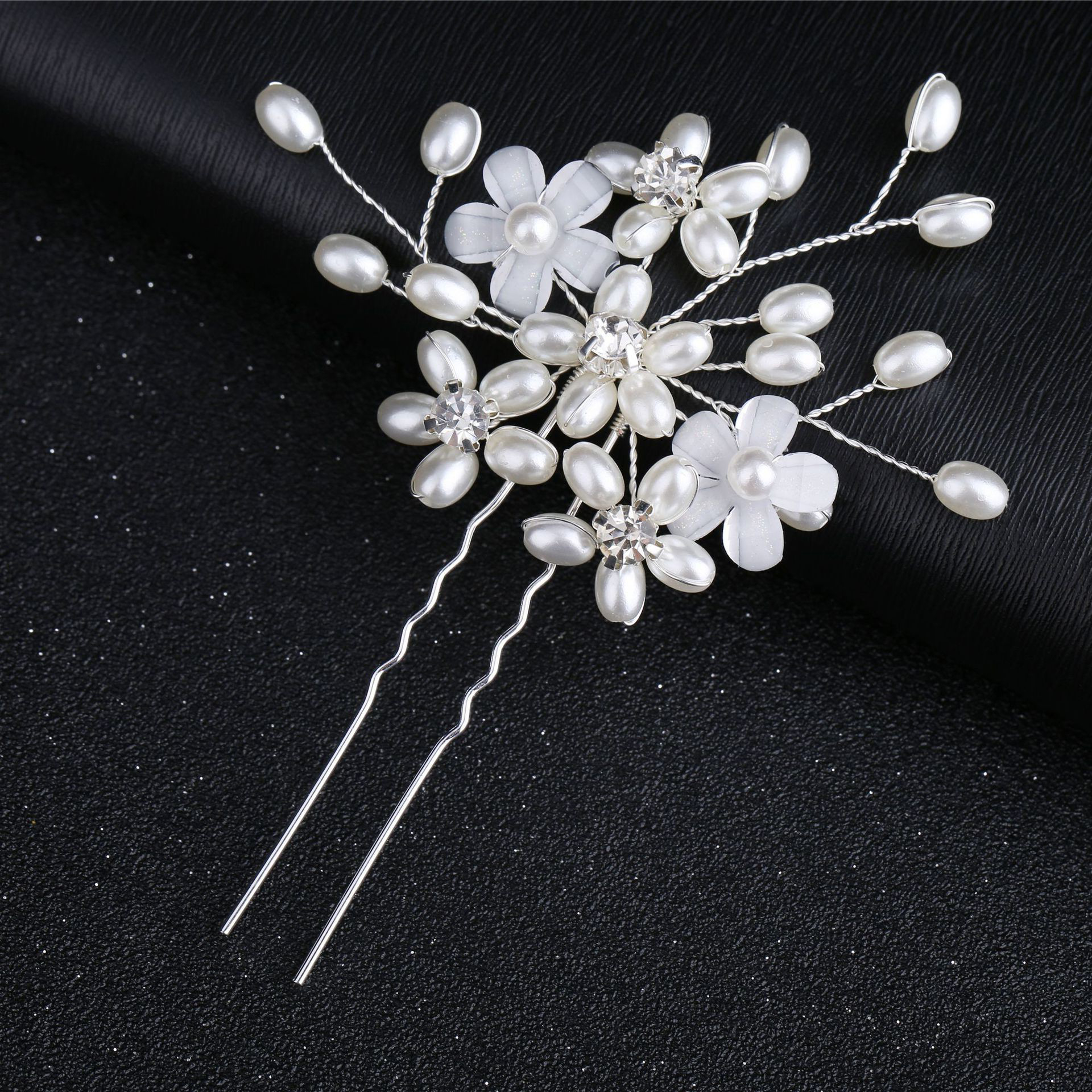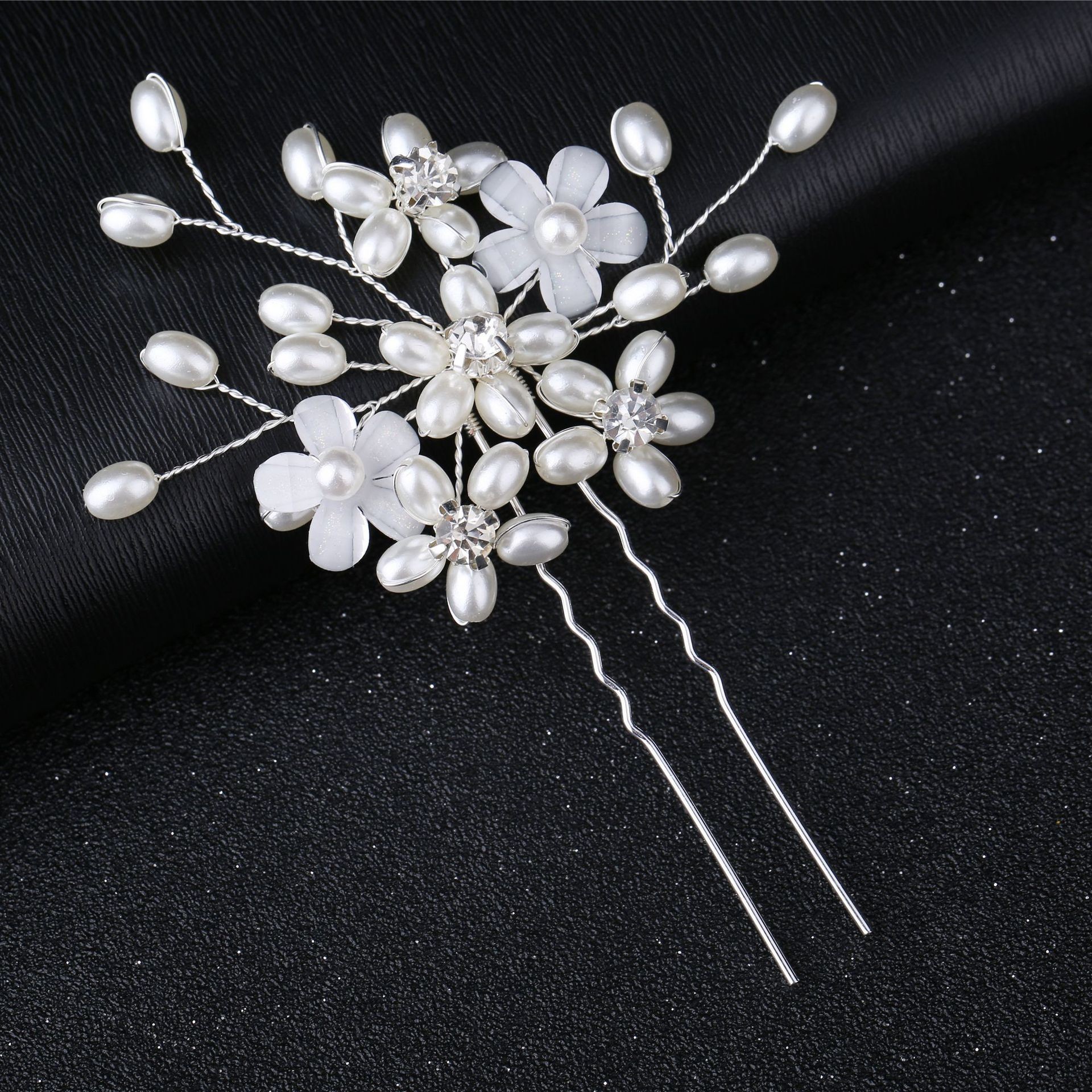 Palillos para el Cabello, aleación de zinc, con alambre de latón & Perlas plásticas, hecho a mano, Joyería & para mujer & con diamantes de imitación, plateado, 110x60x5mm, Vendido por UD