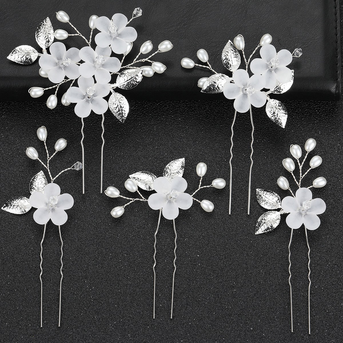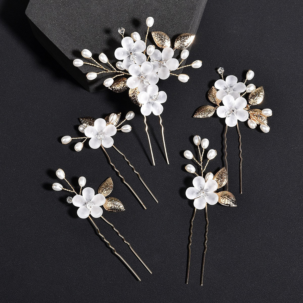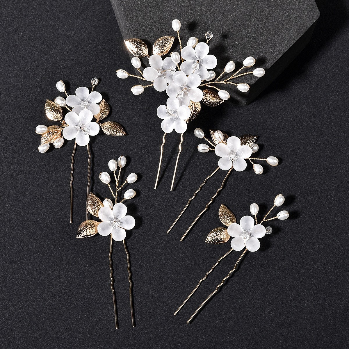 Palillos para el Cabello, aleación de zinc, con alambre de latón & Cristal & Perlas plásticas & Acrílico, hecho a mano, 5 piezas & Joyería & para mujer, más colores para la opción, 140x100x10mm, Vendido por Set
