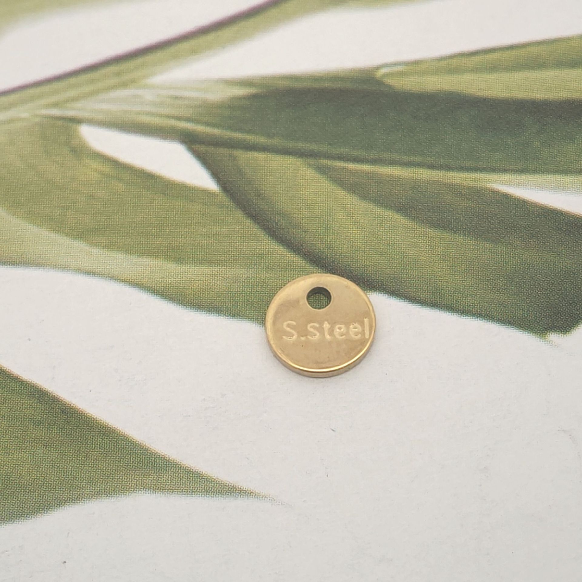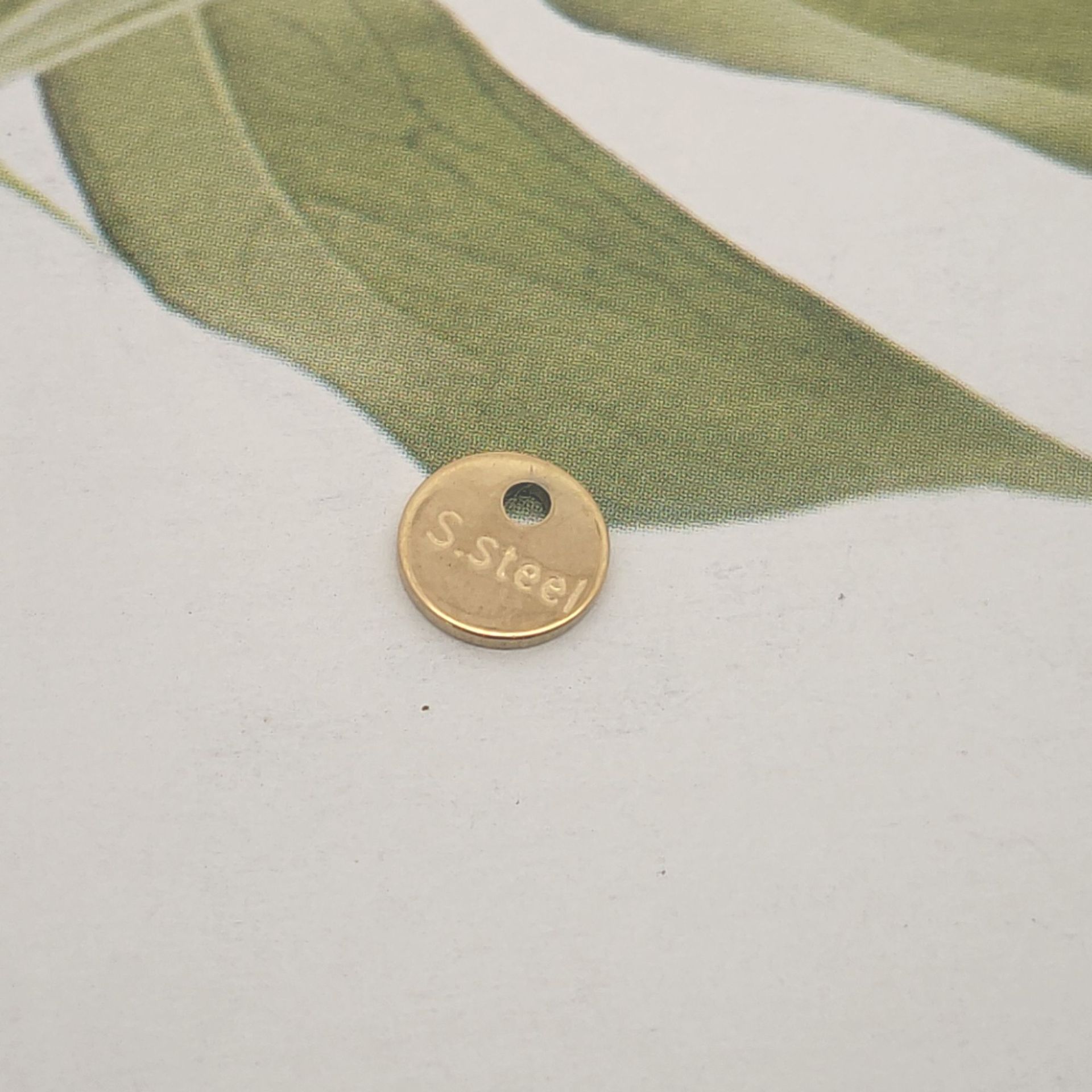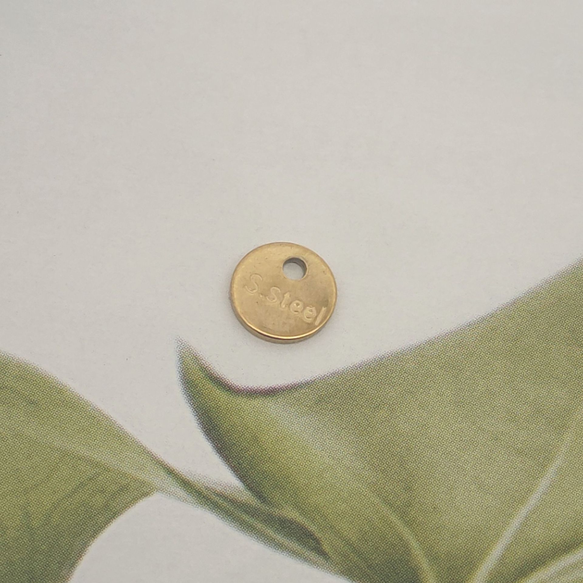 extensor de cadena de acero inoxidable , acero inoxidable 316, Redondo aplanado, con el patrón de la letra, color original, 12x12x3mm, agujero:aproximado 2mm, Vendido por UD