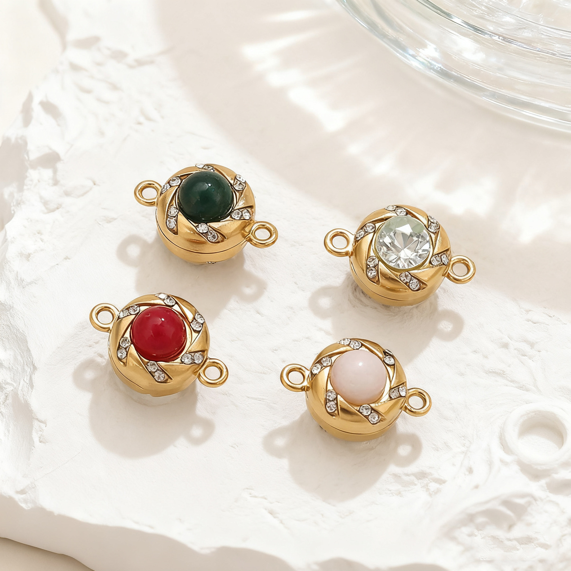 Cierre magnético redondo de acero inoxidable, acero inoxidable 304, con Piedras preciosas, chapado, Bricolaje & diferentes estilos para la opción & con diamantes de imitación, 13.8x8.8mm, Vendido por UD