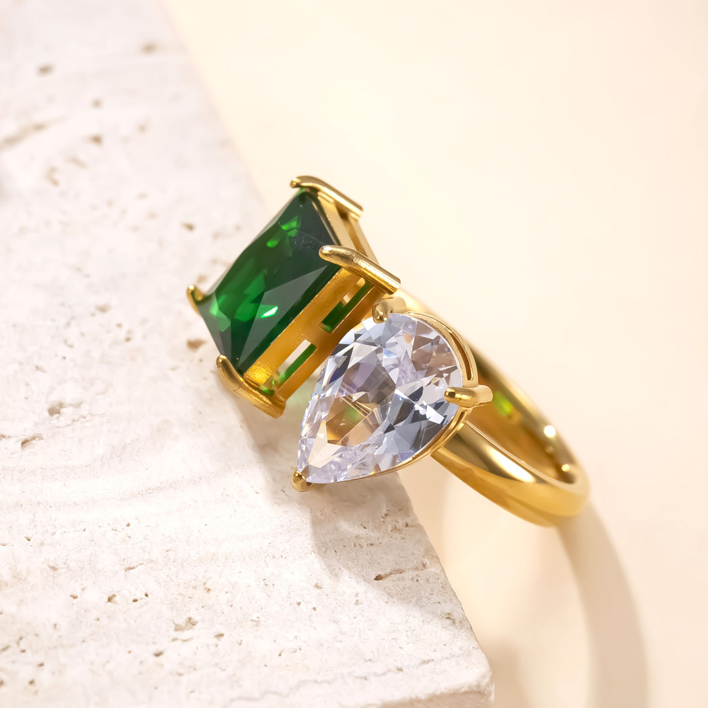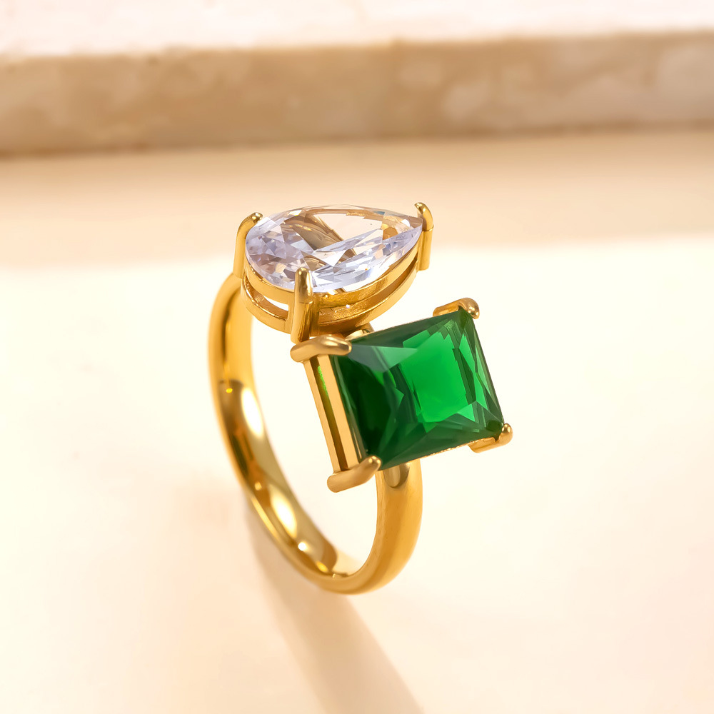 Circón cúbico anillo de dedo de latón, metal, chapado en color dorado, con circonia cúbica & facetas, 7x9mm, 17mm, tamaño:6.5, Vendido por UD