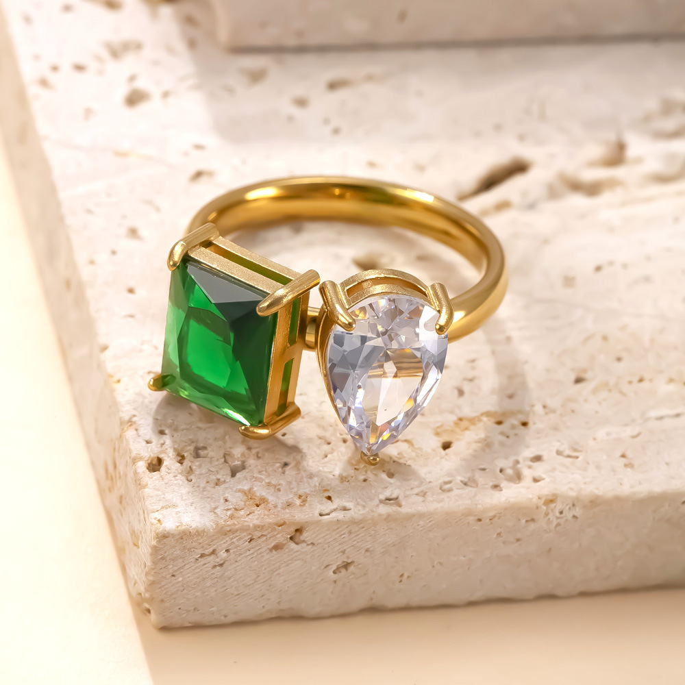 Circón cúbico anillo de dedo de latón, acero inoxidable 304, con cúbica circonia, 18K chapado en oro, Joyería & para mujer, Vendido por UD
