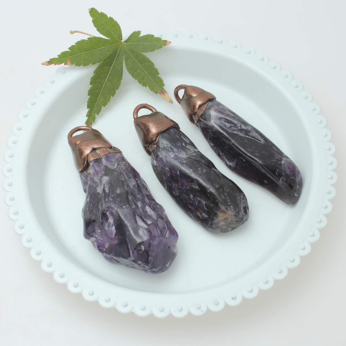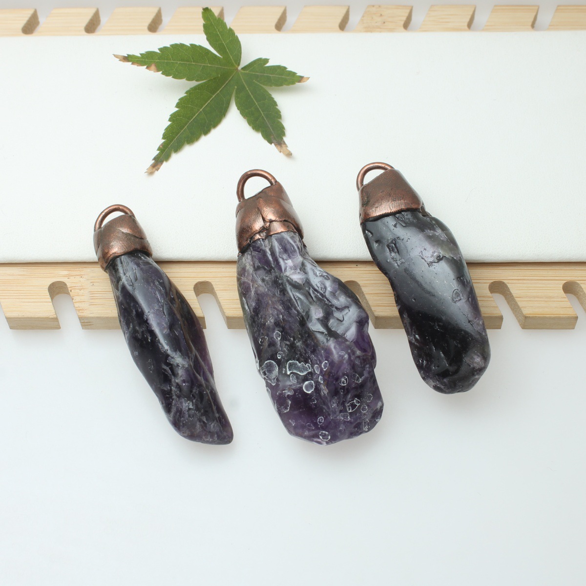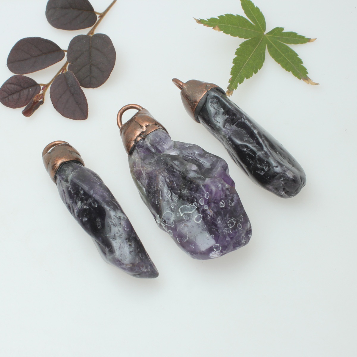amatista colgante, con metal, Pepitas, chapado, Birthstone de febrero, más colores para la opción, libre de níquel, plomo & cadmio, 17-20x32-45mm, agujero:aproximado 5x7mm, Vendido por UD