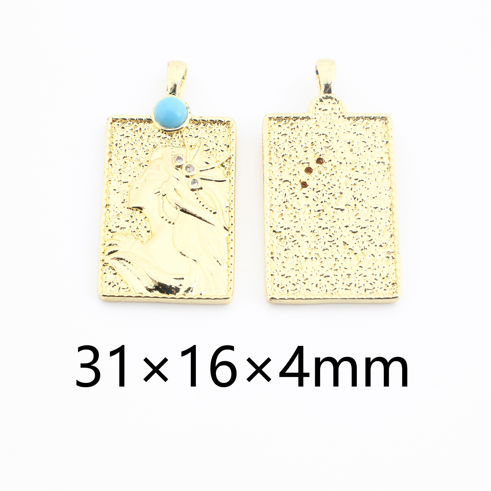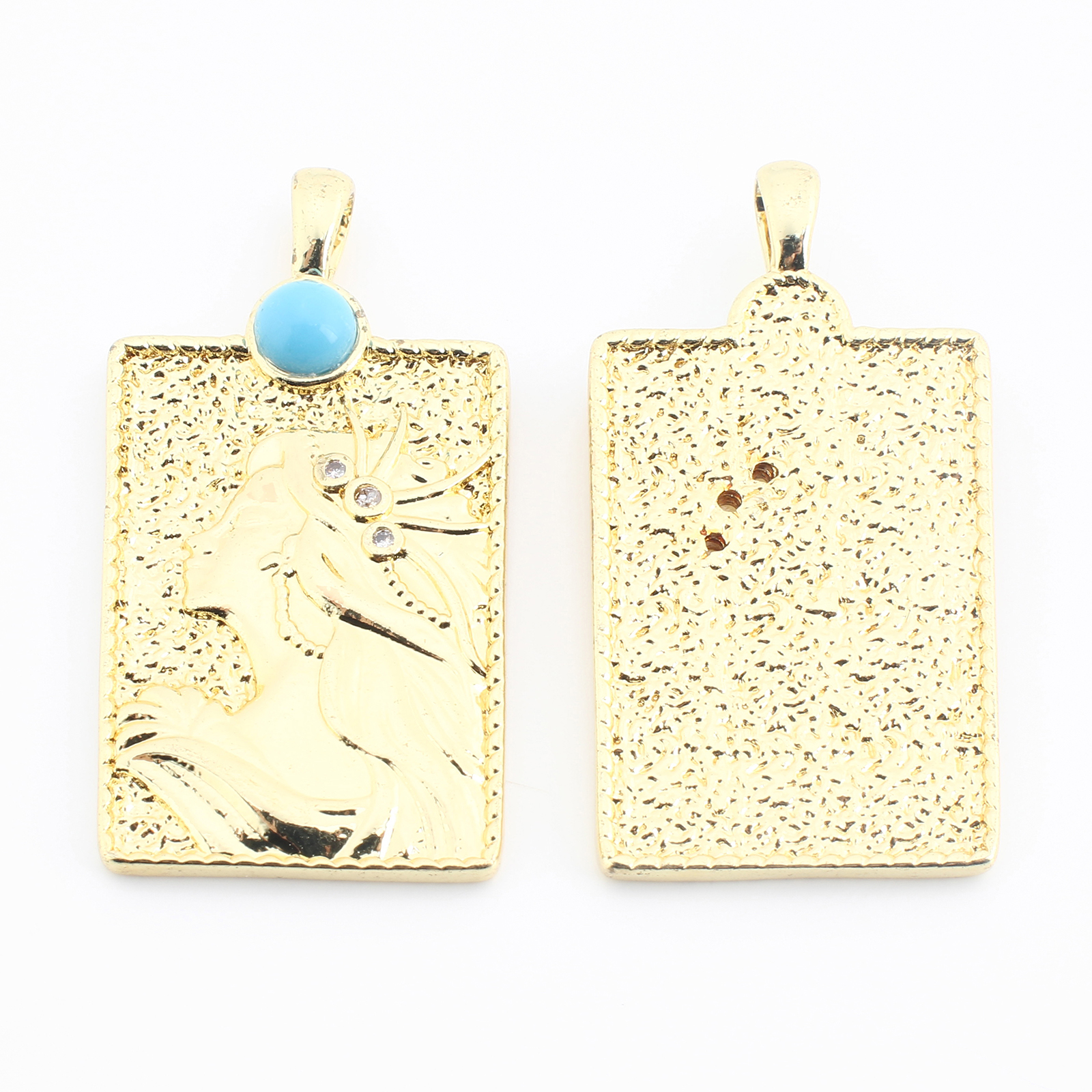 Colgante de Micro Pavé de Zirconía Cúbica, metal, Rectángular, chapado en color dorado, Bricolaje & micro arcilla de zirconia cúbica, 31x16x4mm, Vendido por UD
