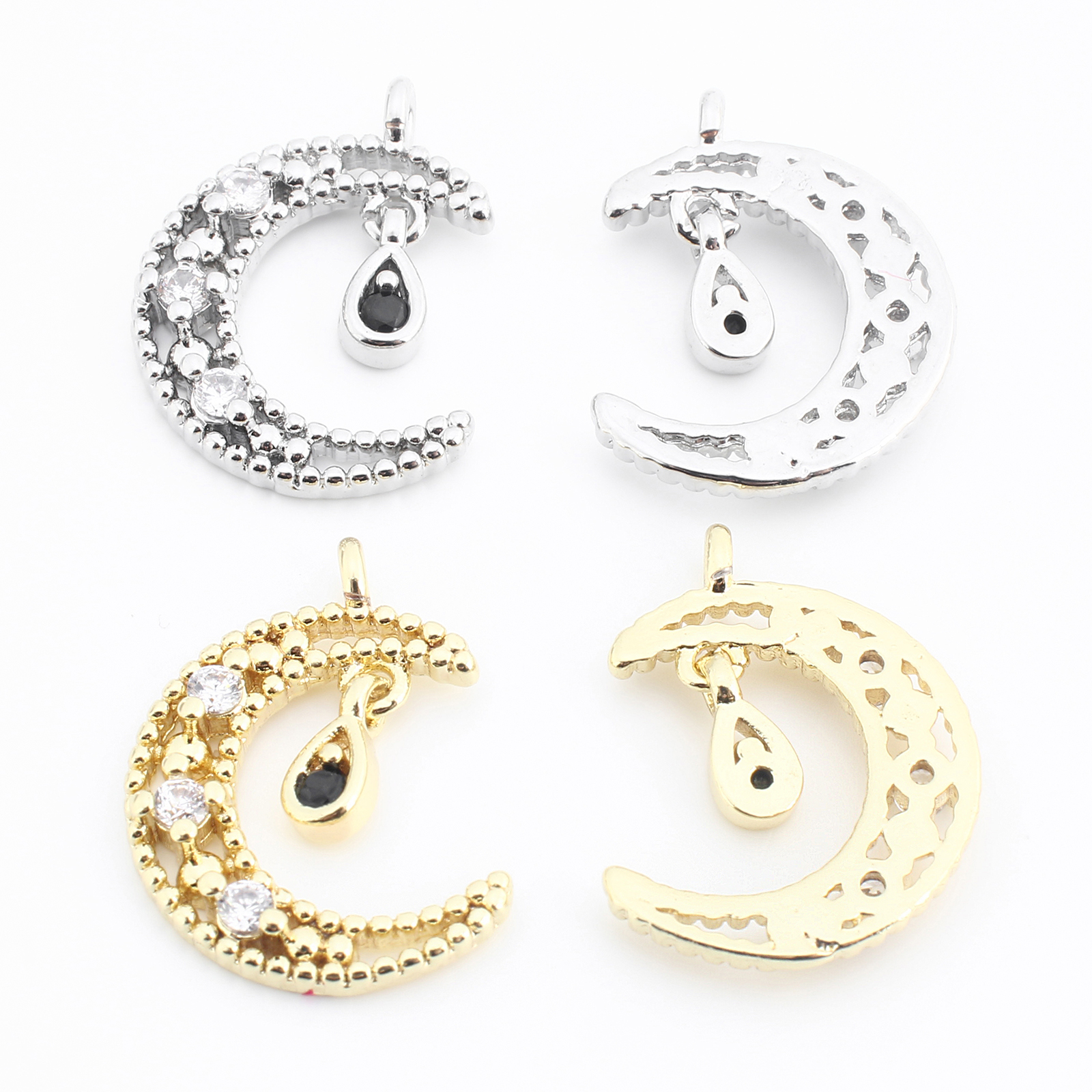 Colgante de Micro Pavé de Zirconía Cúbica, metal, Luna, chapado, Bricolaje & micro arcilla de zirconia cúbica, más colores para la opción, 18x13x3mm, Vendido por UD