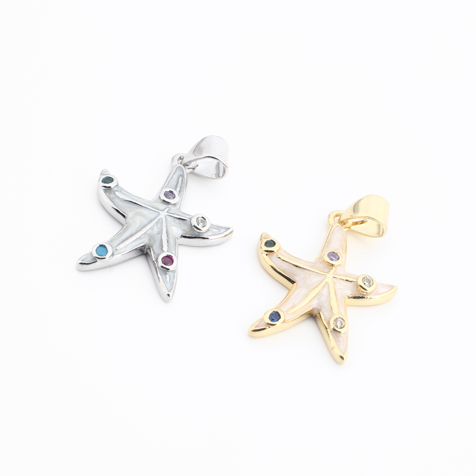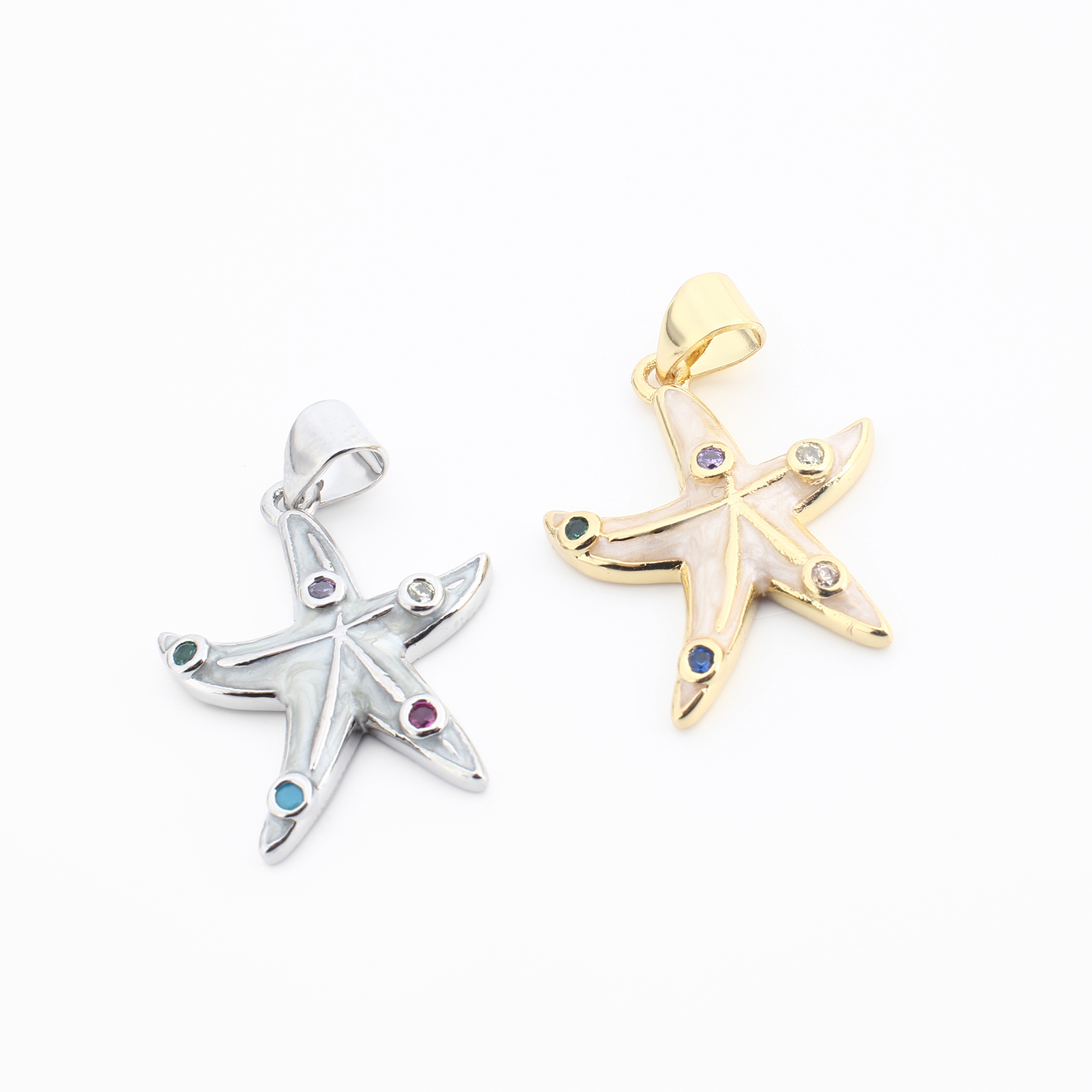 Colgante de Micro Pavé de Zirconía Cúbica, metal, Estrella de Mar, chapado, Bricolaje & micro arcilla de zirconia cúbica, más colores para la opción, 26x17.5x3mm, Vendido por UD