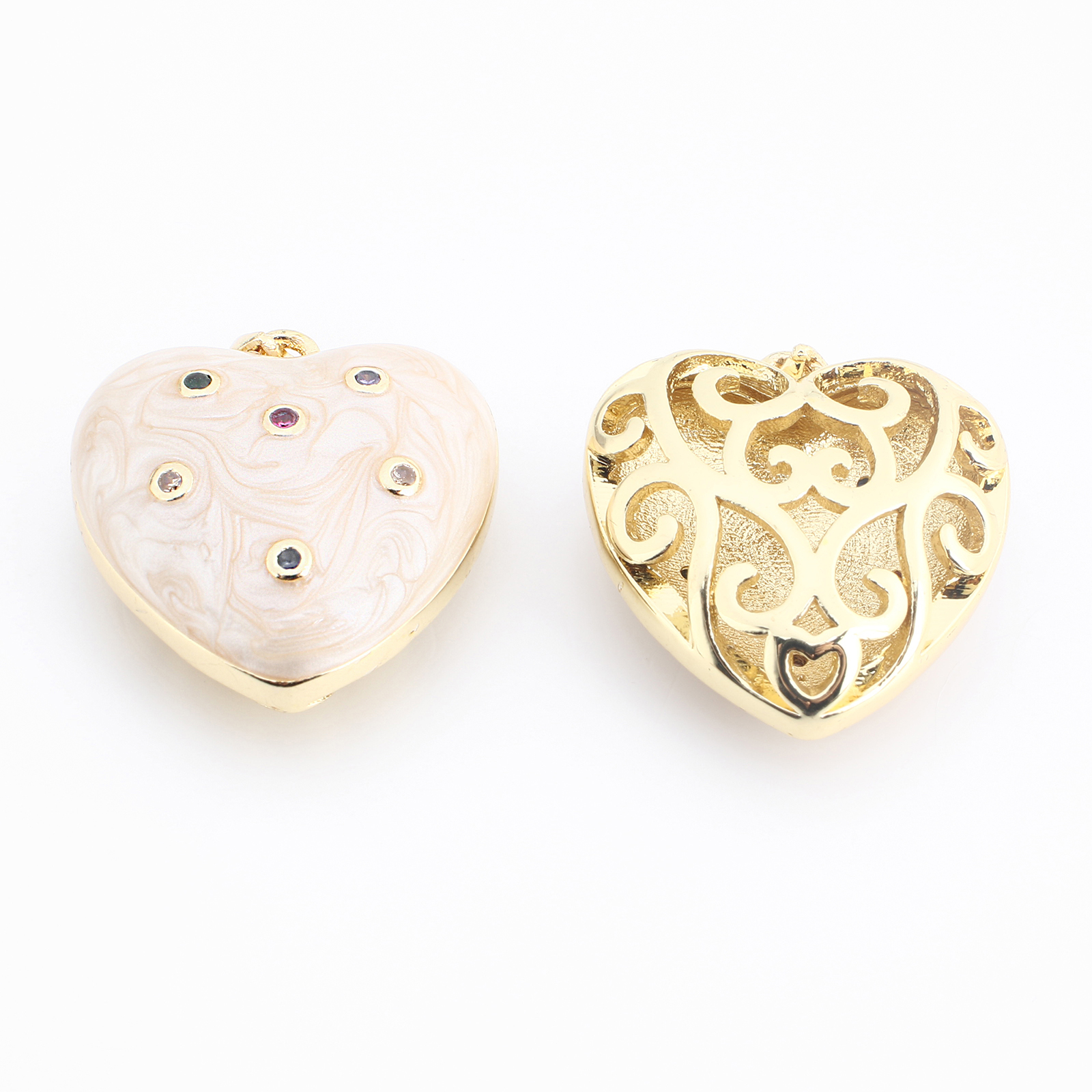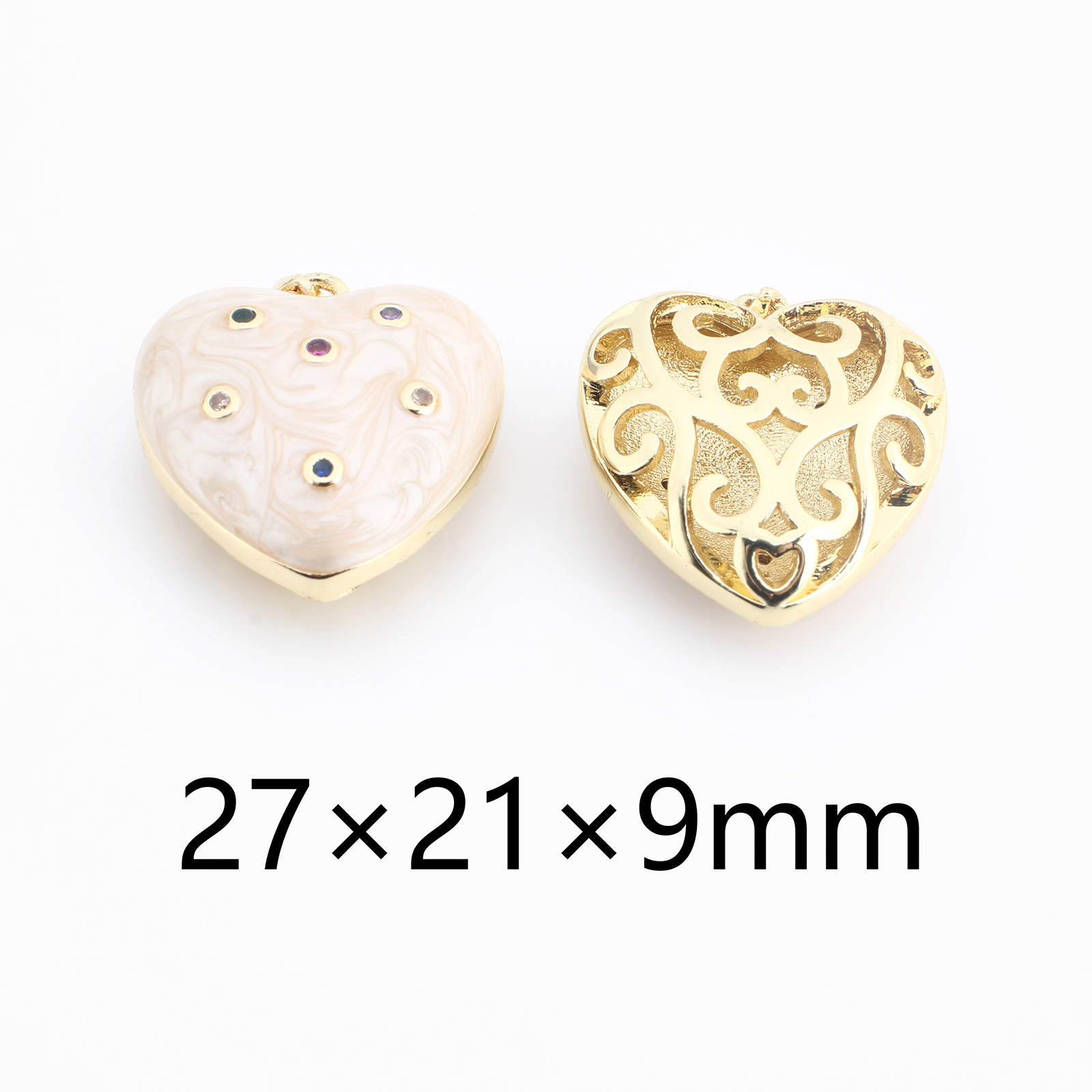 Colgante de Micro Pavé de Zirconía Cúbica, metal, Corazón, chapado en color dorado, Bricolaje & micro arcilla de zirconia cúbica & esmalte, 27x21x9mm, Vendido por UD