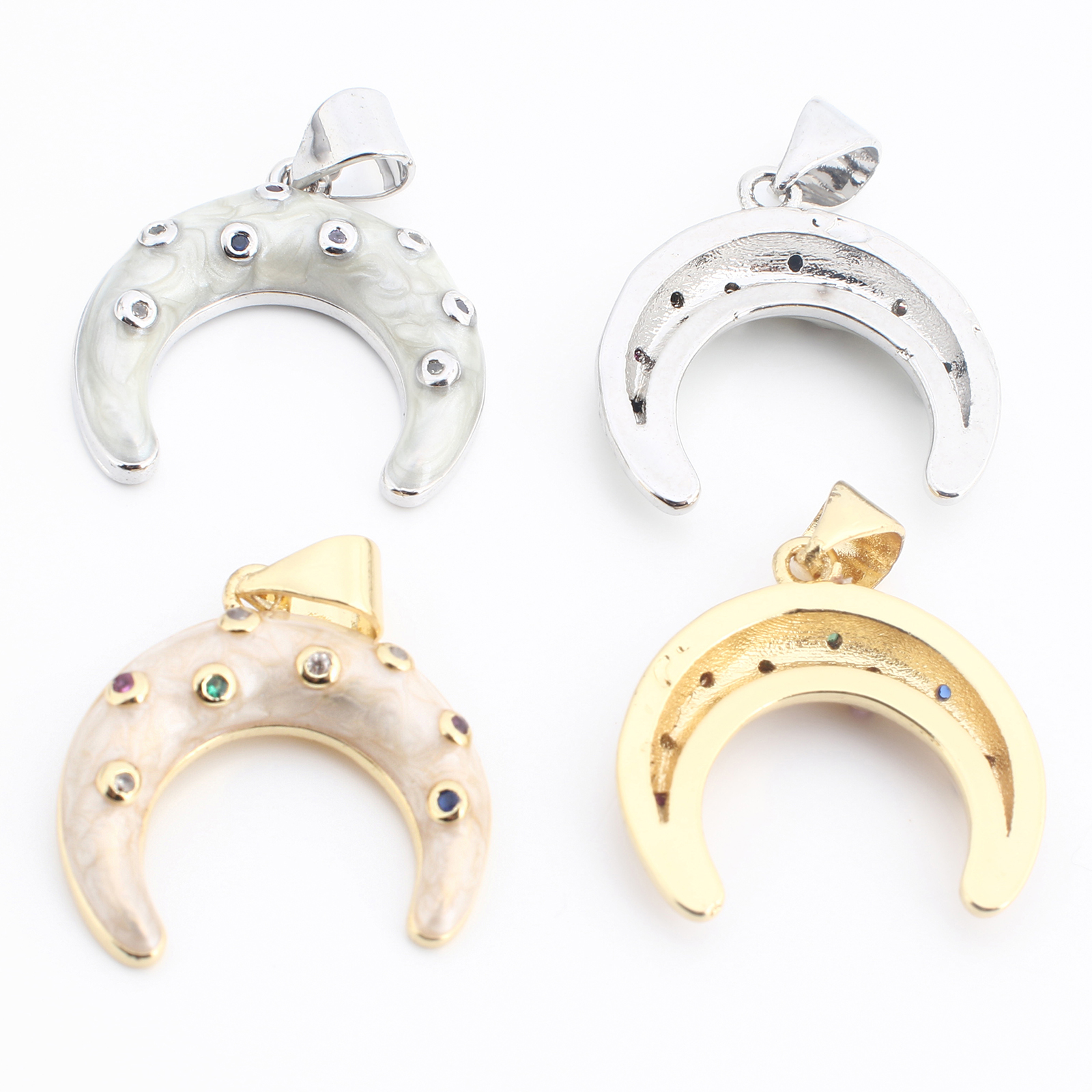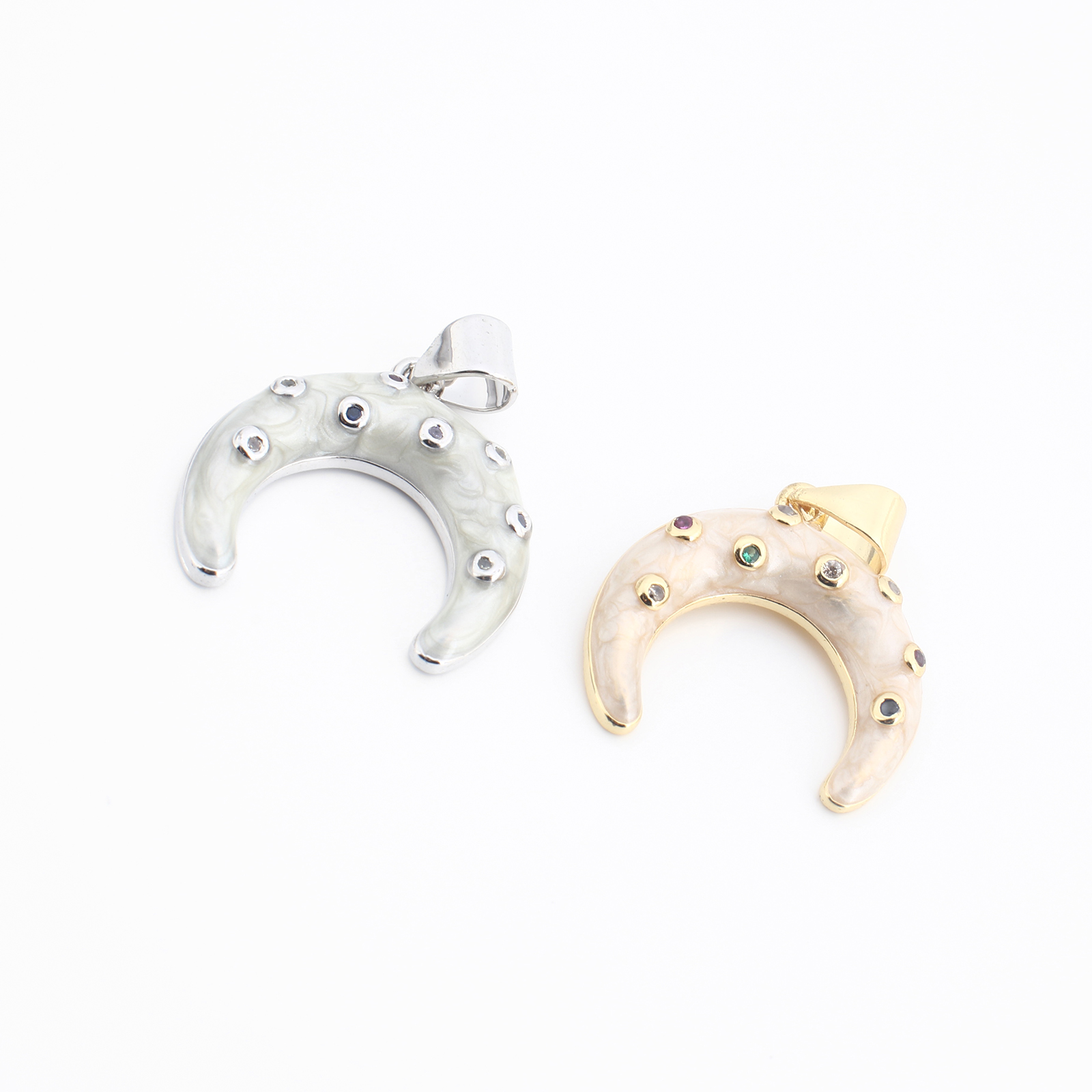 Colgante de Micro Pavé de Zirconía Cúbica, metal, Luna, chapado, Bricolaje & micro arcilla de zirconia cúbica & esmalte, más colores para la opción, 23x18x4mm, Vendido por UD