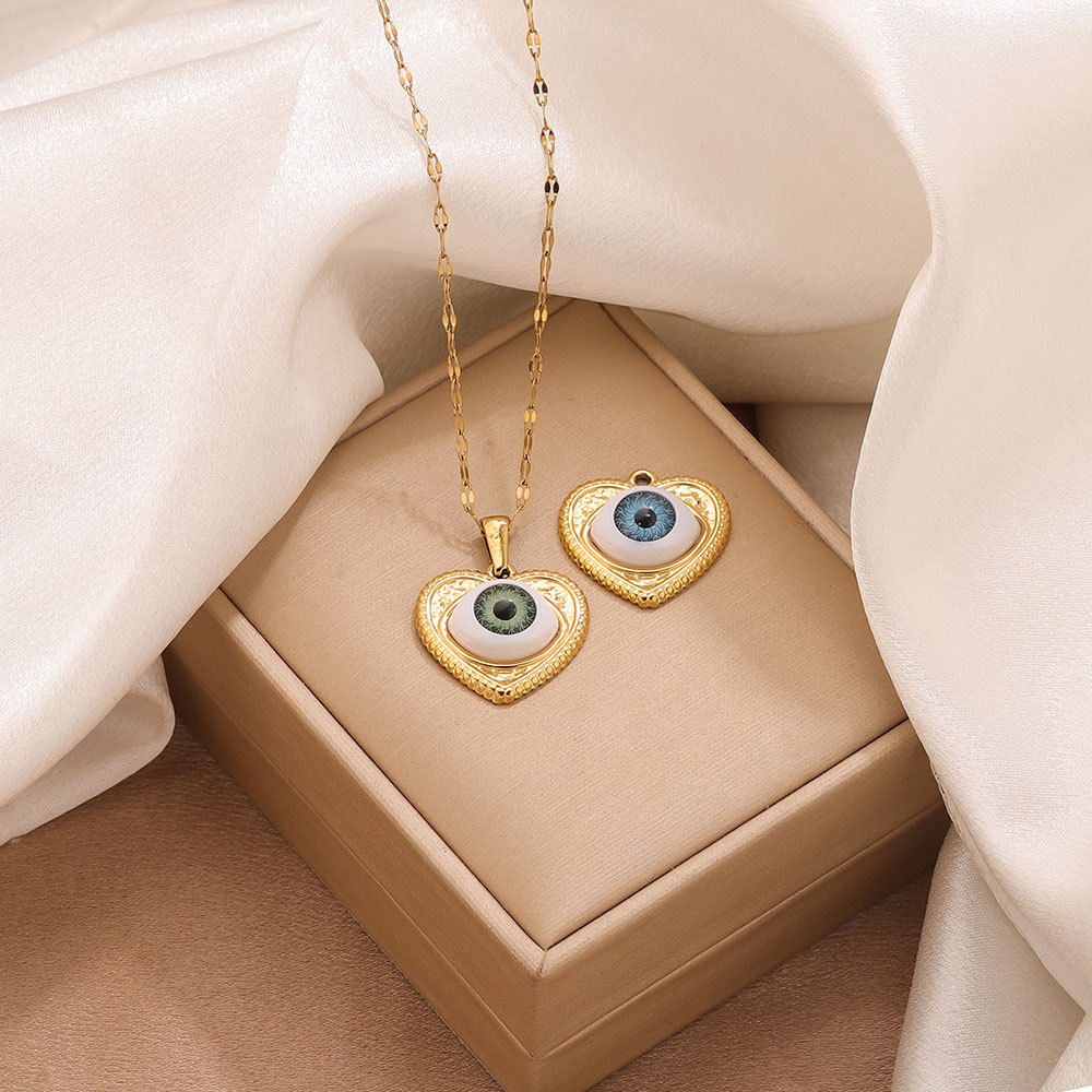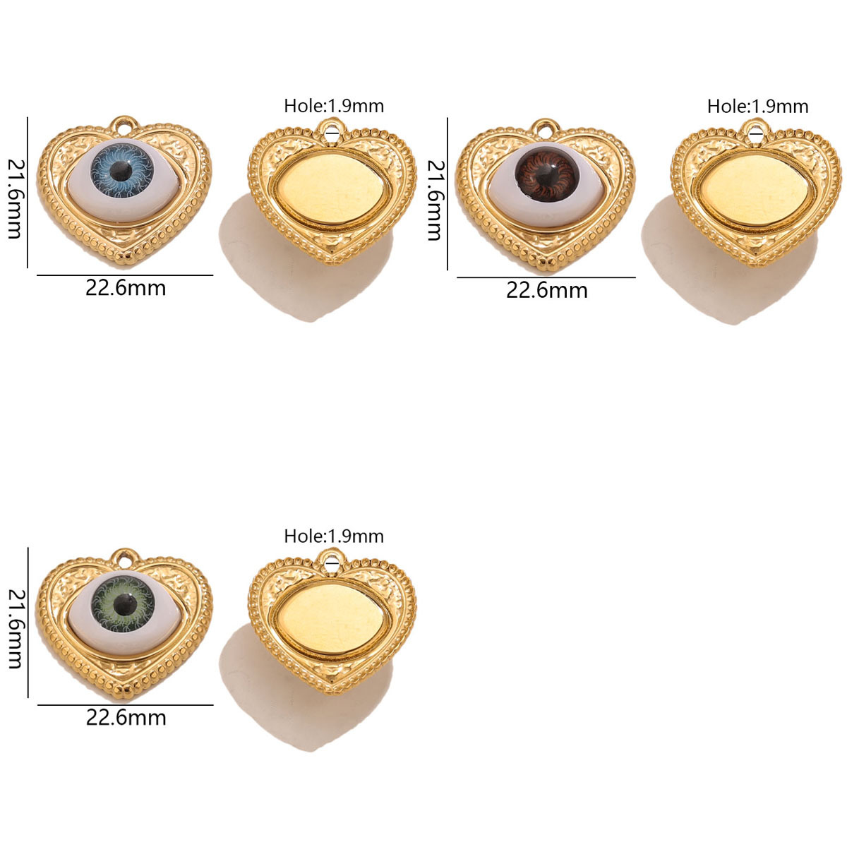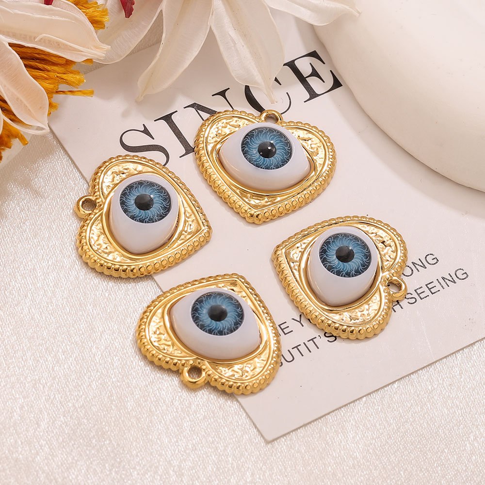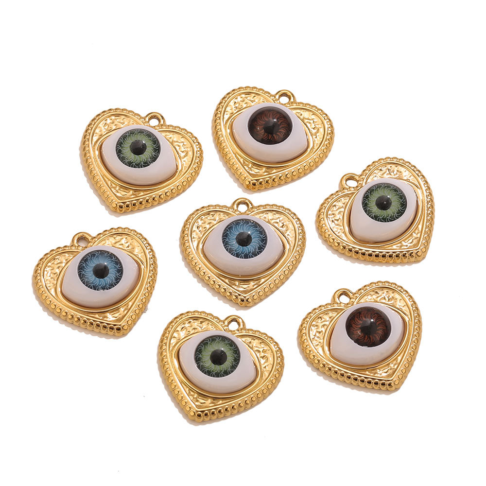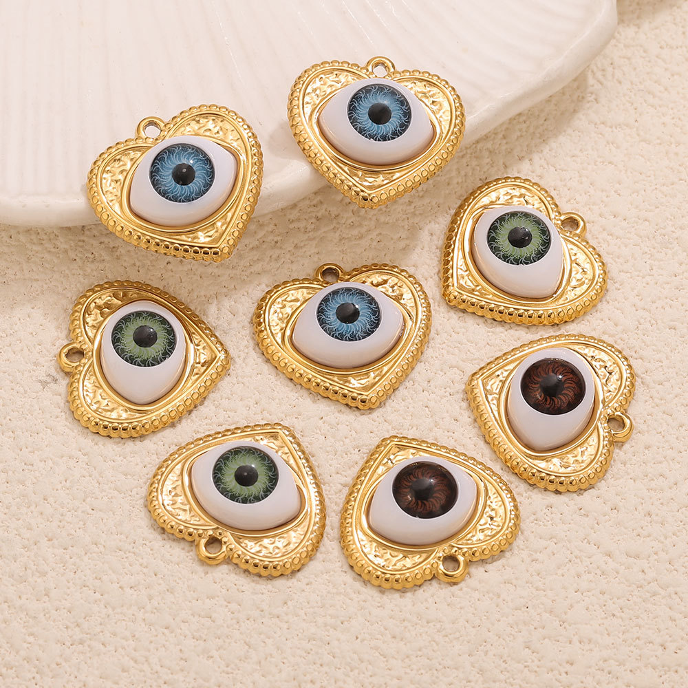 Colgante de acero inoxidable de la resina, acero inoxidable 304, con resina, Corazón, chapado en color dorado, con patrón de ojo & Bricolaje, más colores para la opción, 22.6x21.6mm, agujero:aproximado 1.9mm, Vendido por UD