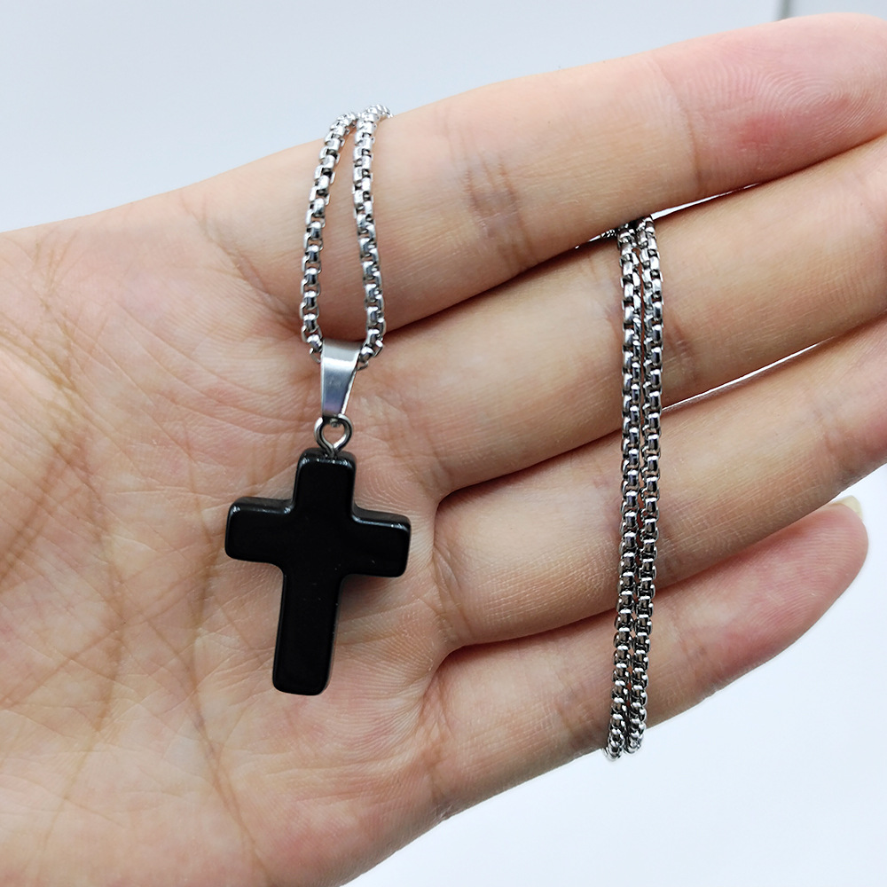 Colgantes de Aleación de Zinc en Forma Cruces, con Piedra natural, chapado en color dorado, Joyería, más colores para la opción, 25x18mm, longitud:50 cm, Vendido por UD