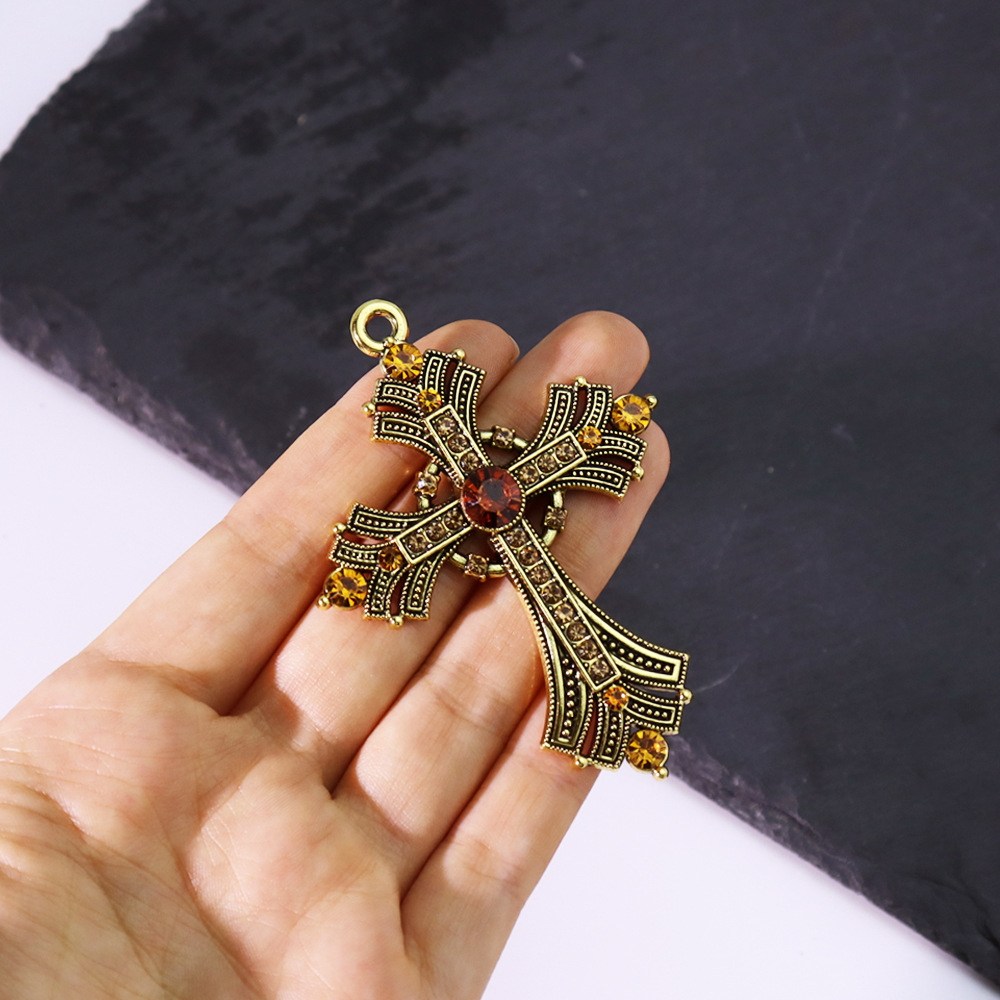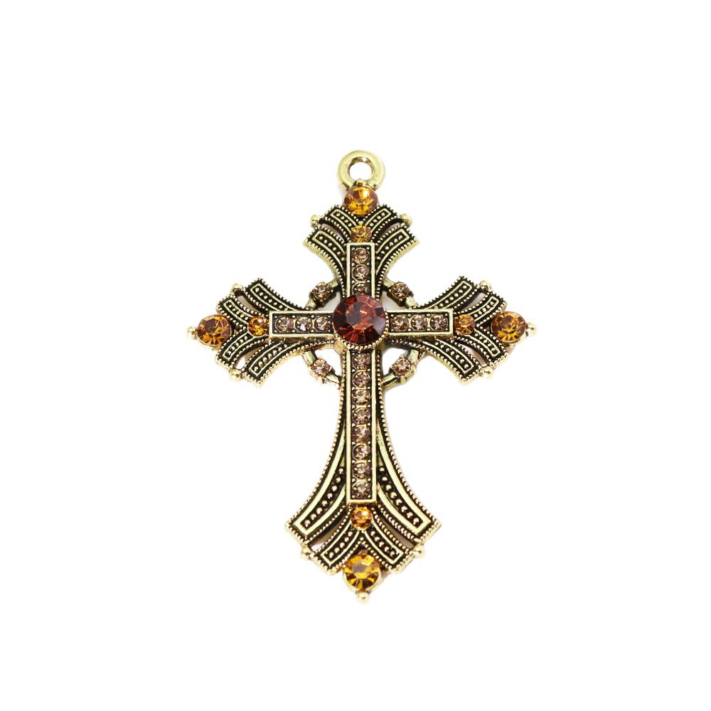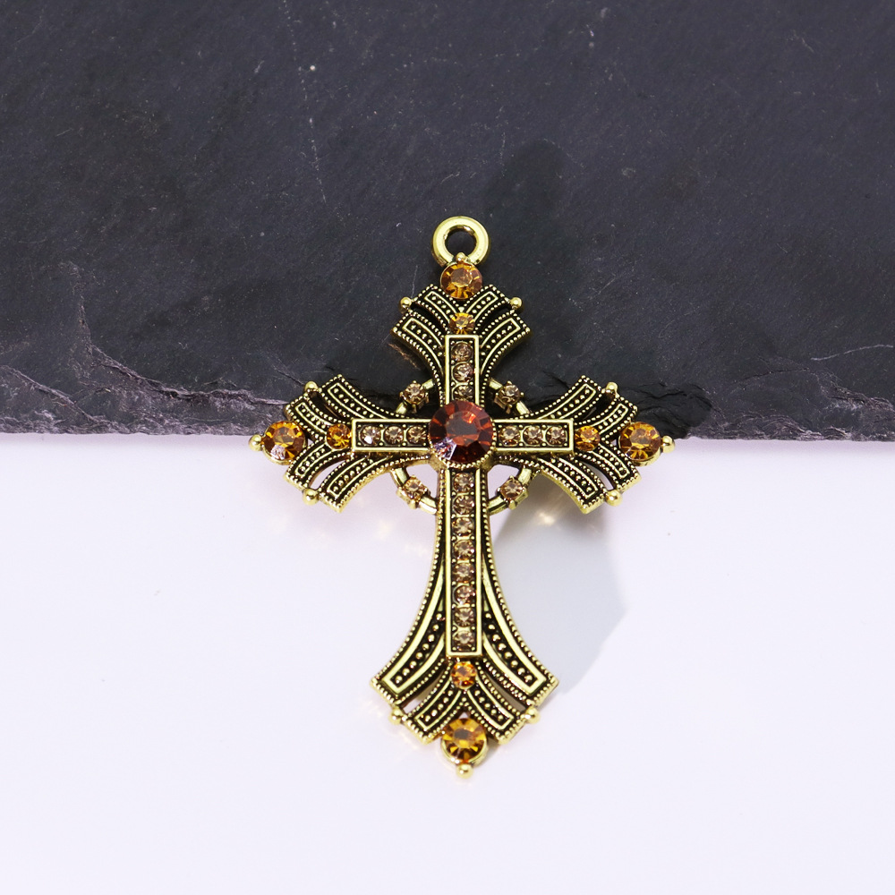 Colgantes de Aleación de Zinc en Forma Cruces, chapado en color dorado, Bricolaje & con diamantes de imitación, dorado, Vendido por UD