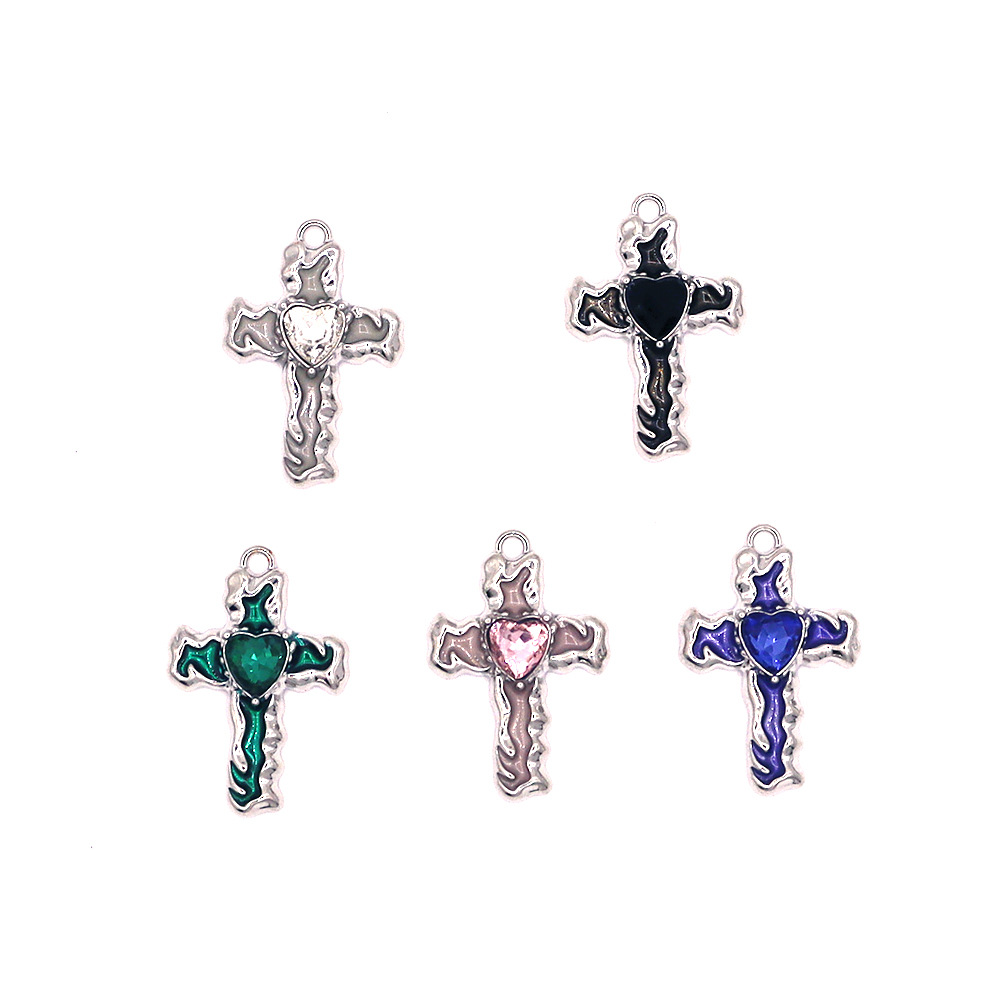 Colgantes de Aleación de Zinc en Forma Cruces, chapado en color dorado, Bricolaje & esmalte & con diamantes de imitación, más colores para la opción, Vendido por UD