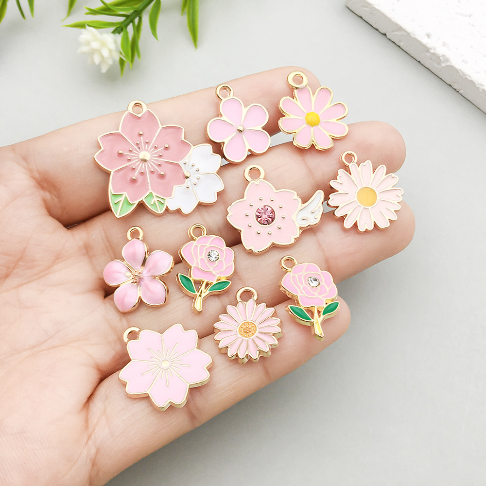 Colgantes de Aleación de Zinc en Forma Flor, chapado en color dorado, Bricolaje & diferentes estilos para la opción & esmalte, Vendido por UD