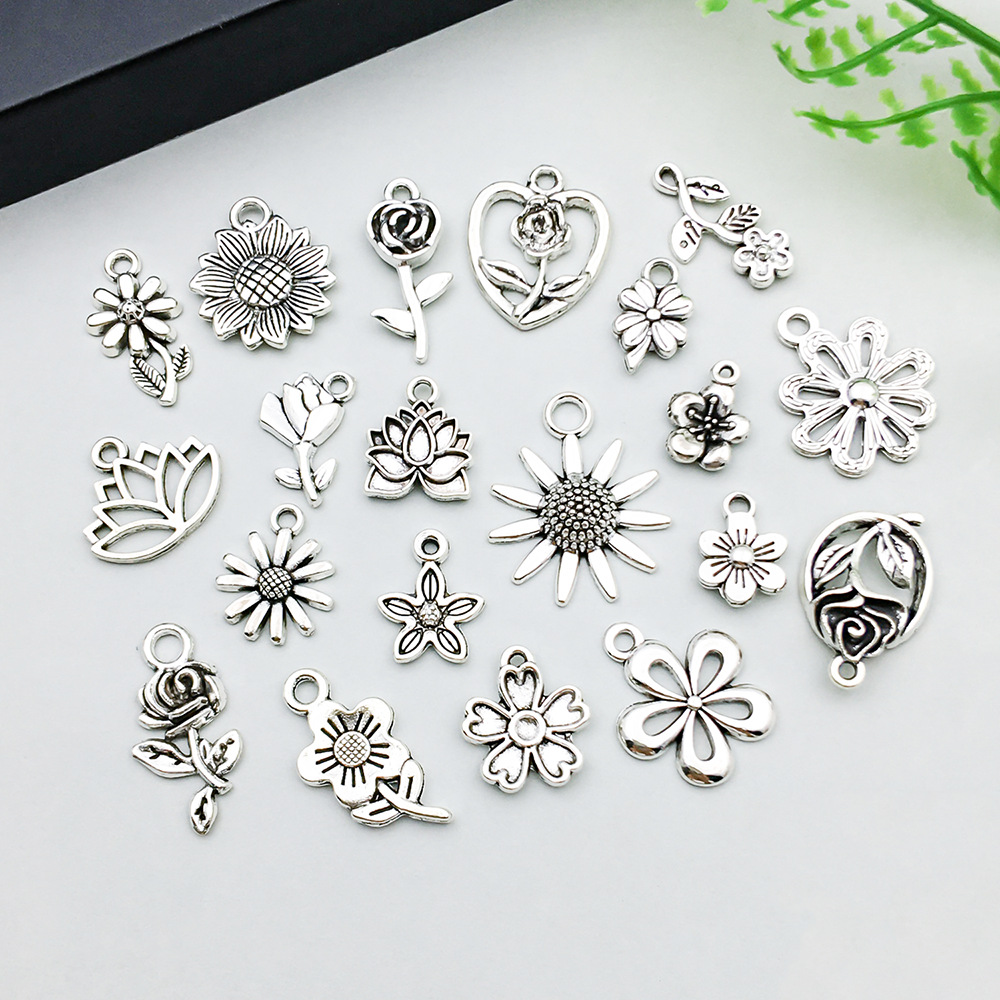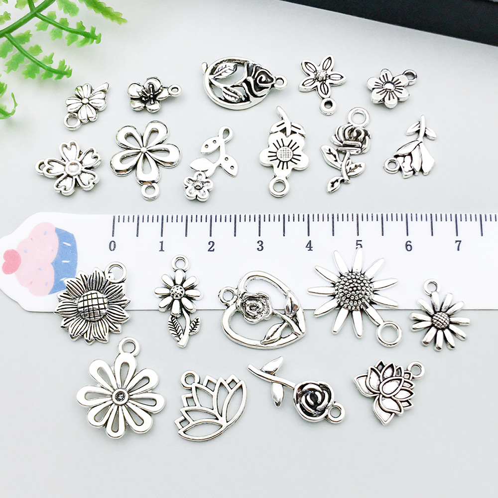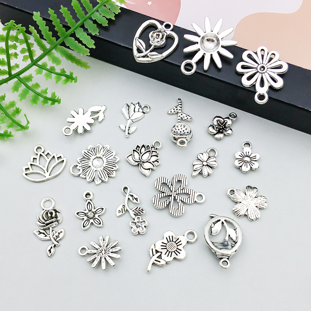 Colgantes de Aleación de Zinc en Forma Flor, chapado en color de plata antigua, Bricolaje & diferentes estilos para la opción, Vendido por UD