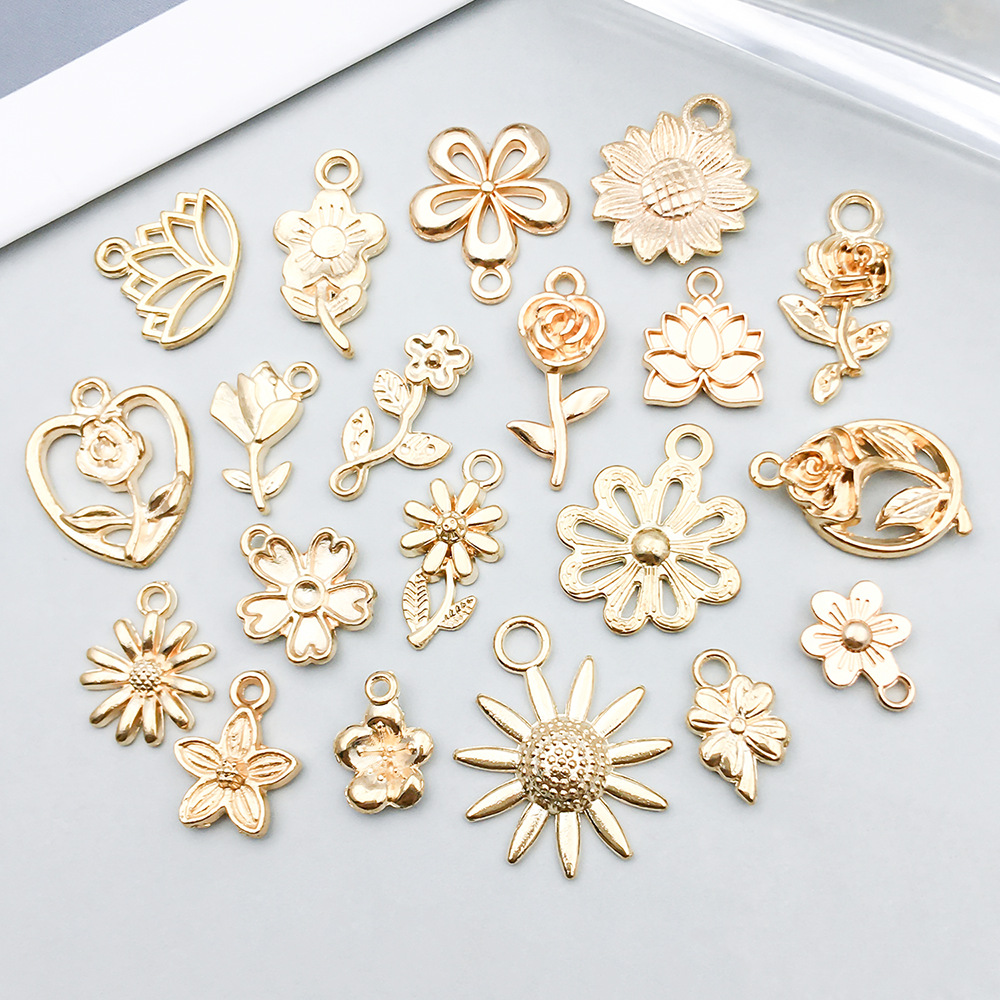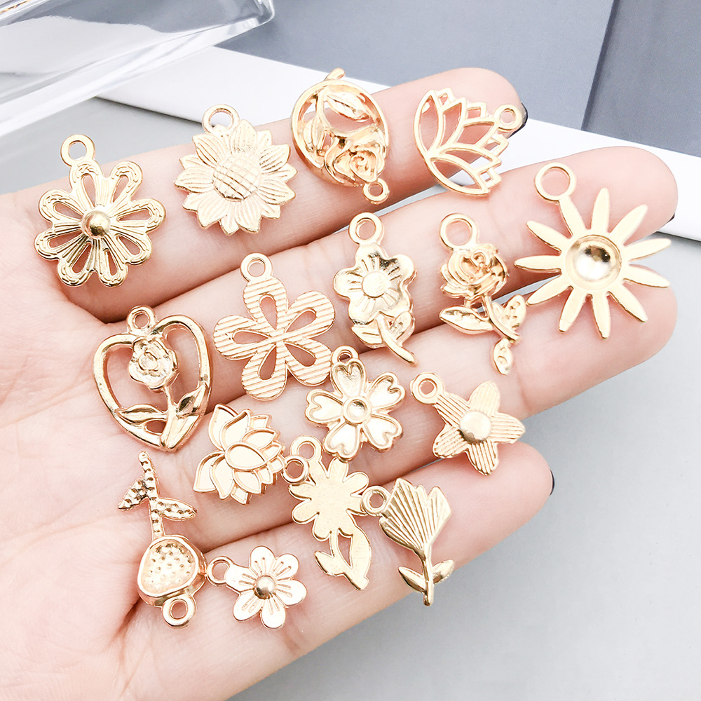 Colgantes de Aleación de Zinc en Forma Flor, chapado en oro KC, Bricolaje & diferentes estilos para la opción, Vendido por UD