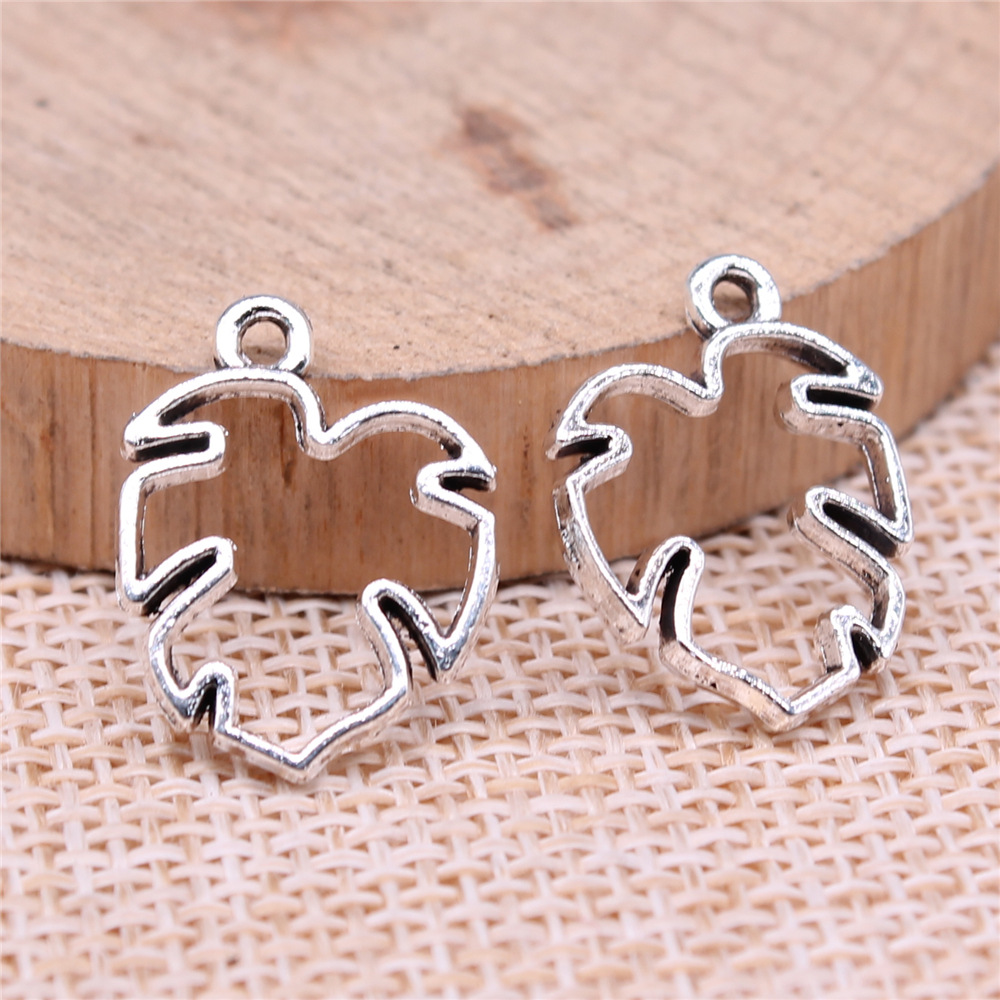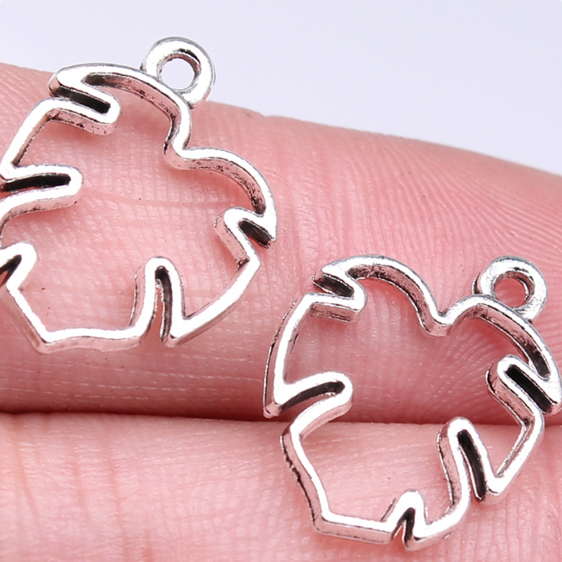 Colgantes de Aleación de Zinc en Forma Hoja, chapado en color de plata antigua, Bricolaje & hueco, 19x15mm, 20PCs/Bolsa, Vendido por Bolsa