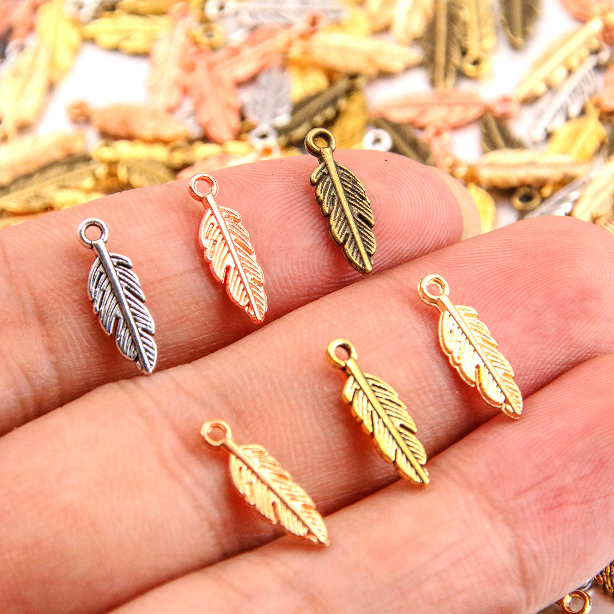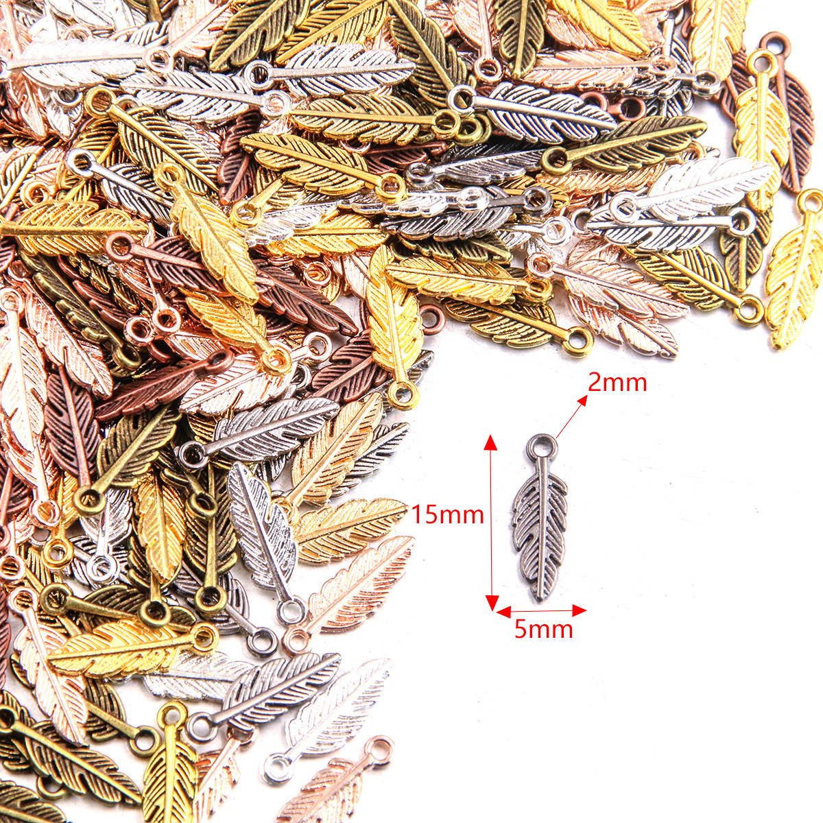 Colgantes de Aleación de Zinc en Forma Hoja, chapado, Bricolaje, más colores para la opción, 15x5mm, agujero:aproximado 2mm, Vendido por UD