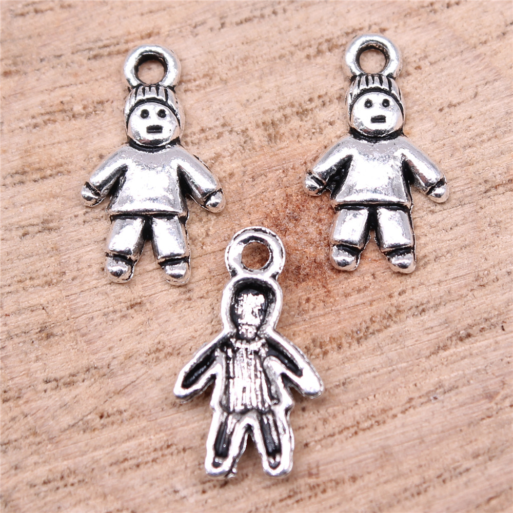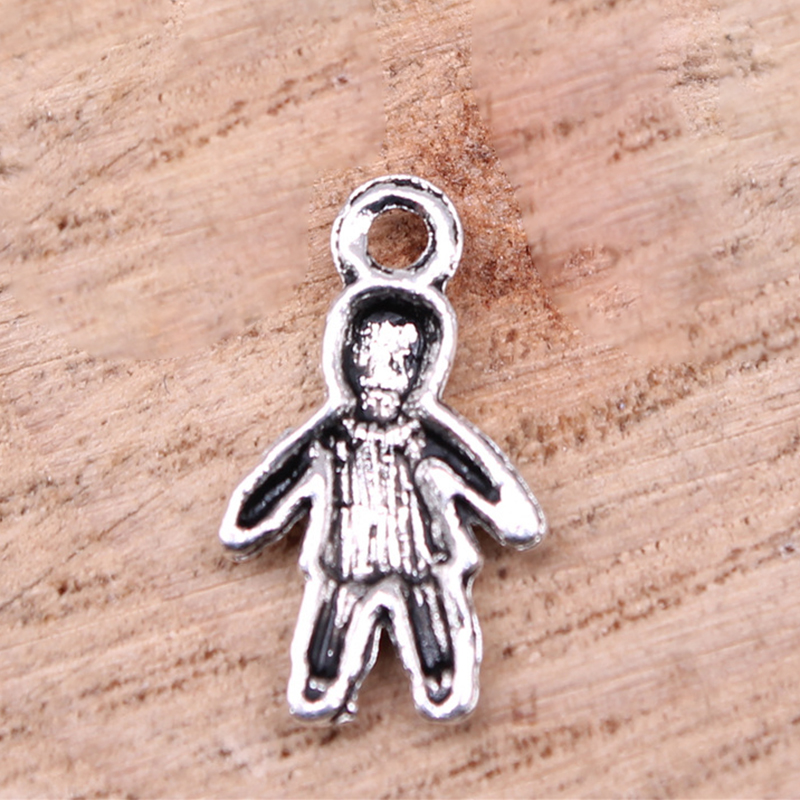 Colgantes de Aleación de Zinc en Forma Personaje, chapado en color de plata antigua, Bricolaje, 16x9mm, 40PCs/Bolsa, Vendido por Bolsa