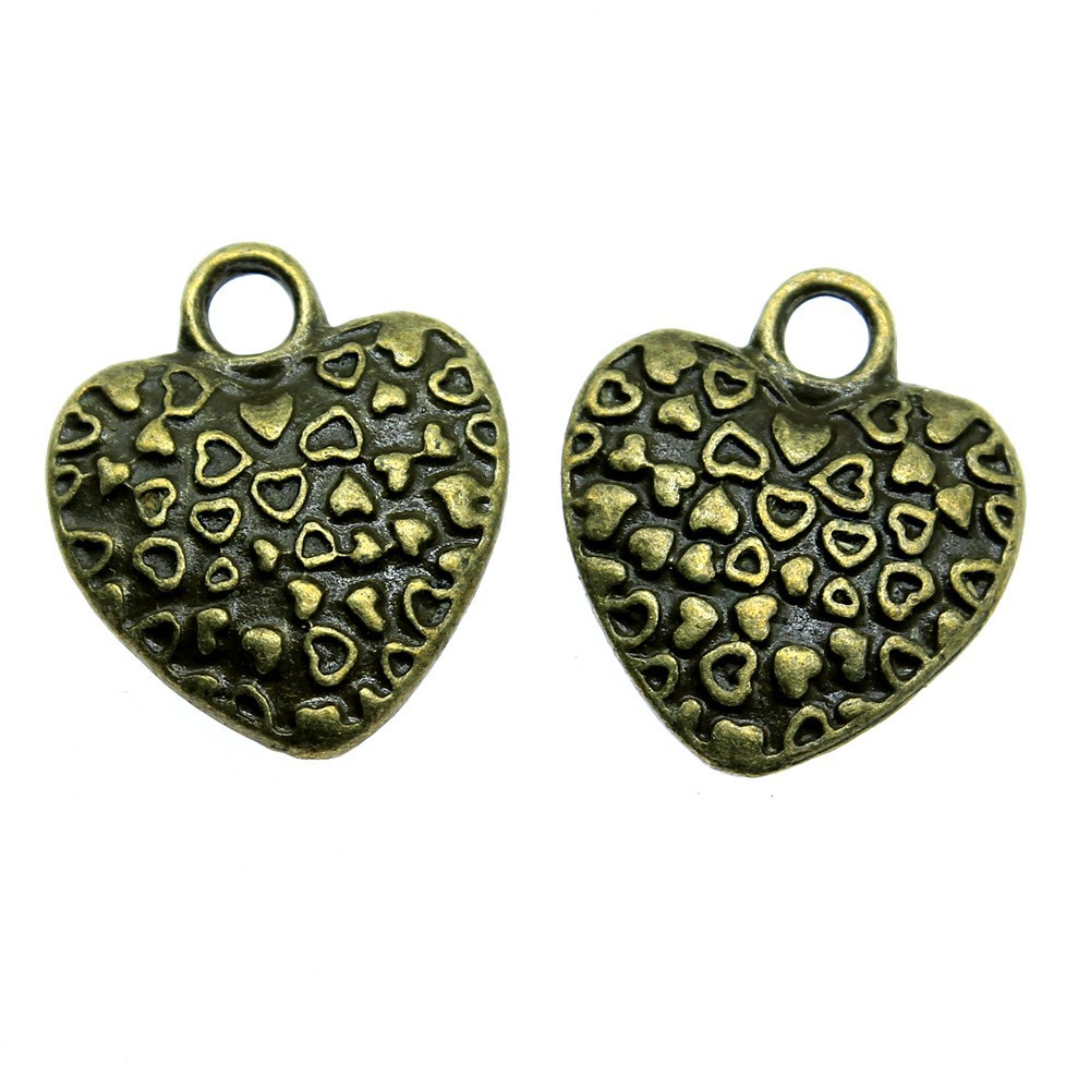 Colgantes de Aleación de Zinc en Forma de Corazón, chapado, Bricolaje, color de bronce antiguo, Vendido por UD