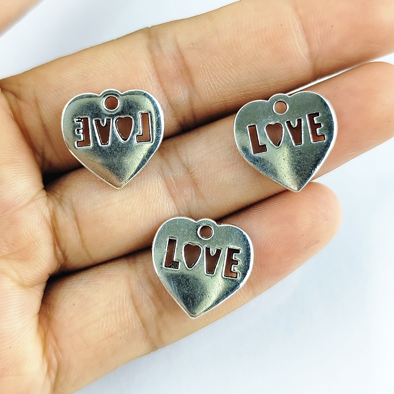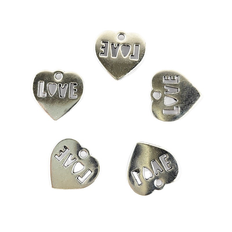 Colgantes de Aleación de Zinc en Forma de Corazón, chapado en color de plata, Bricolaje & hueco, plateado, 100PCs/Bolsa, Vendido por Bolsa