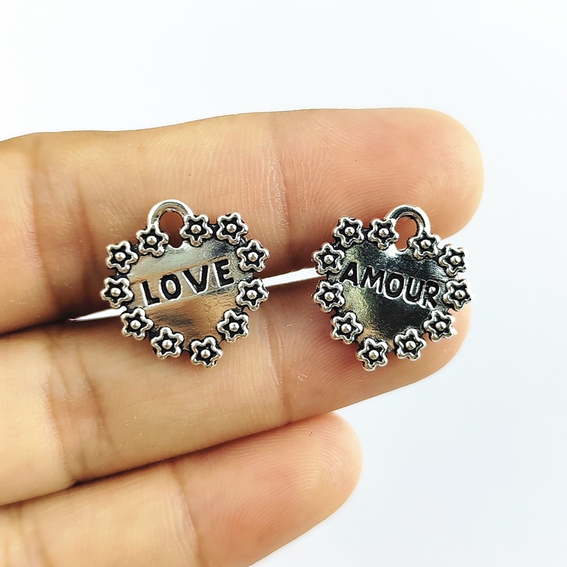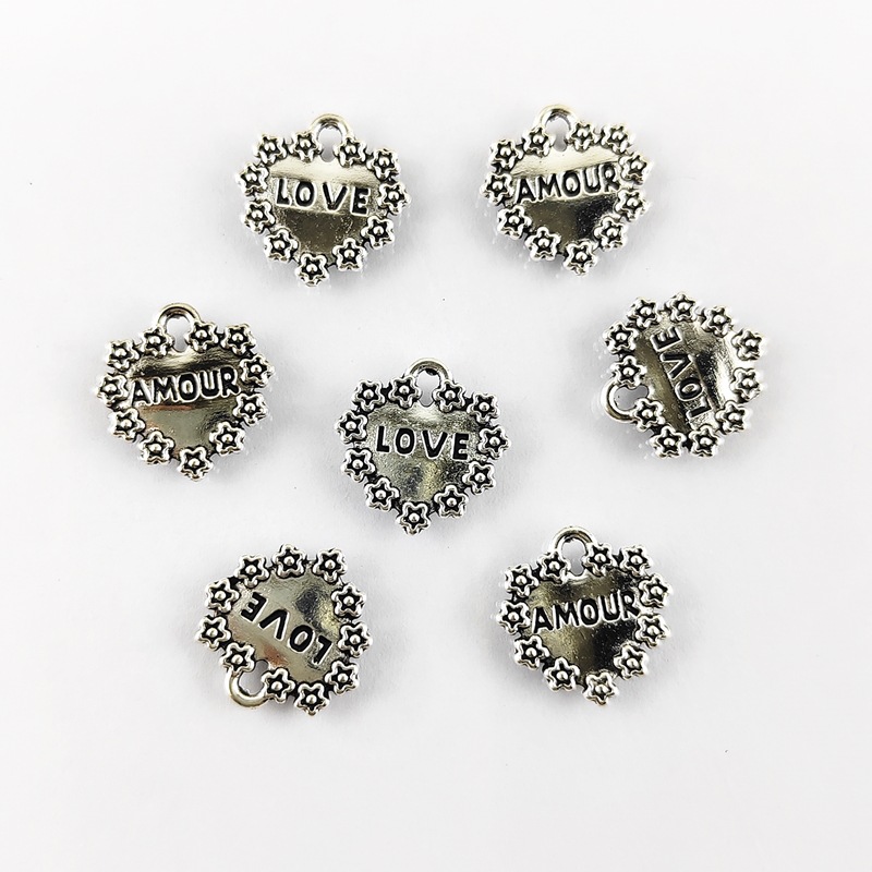Colgantes de Aleación de Zinc en Forma de Corazón, chapado en color de plata, Bricolaje, 16x16mm, 100PCs/Bolsa, Vendido por Bolsa