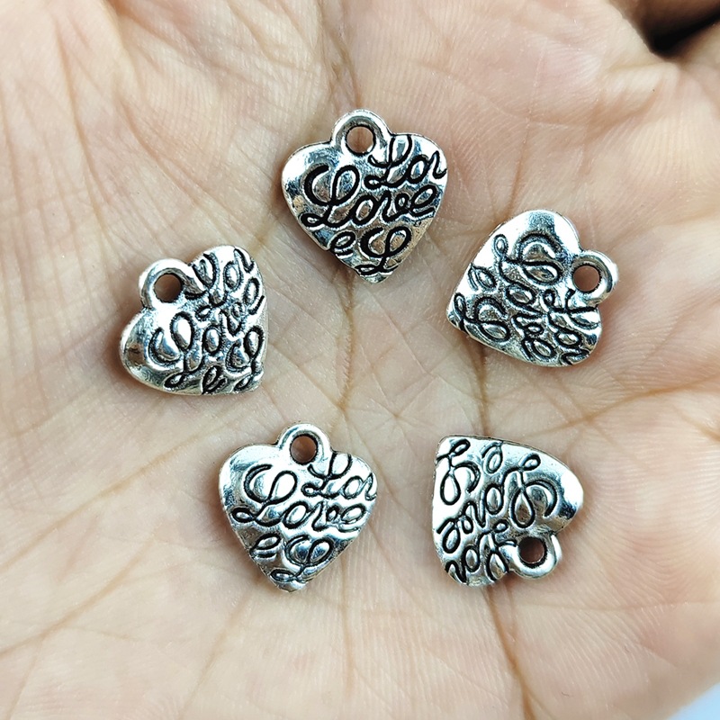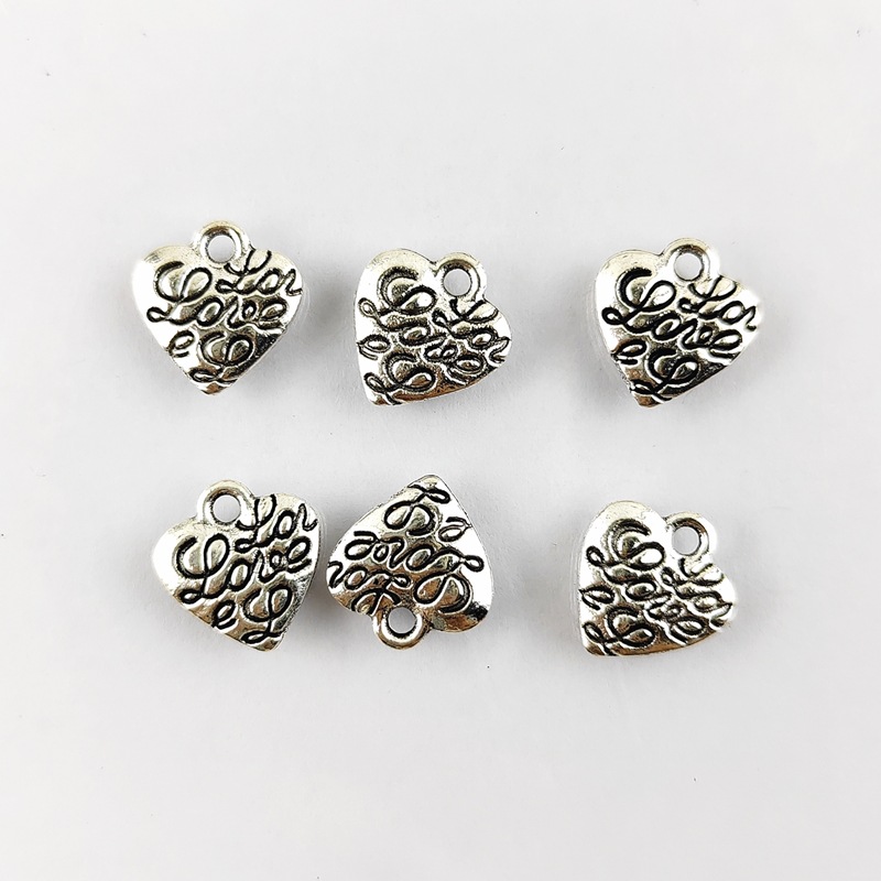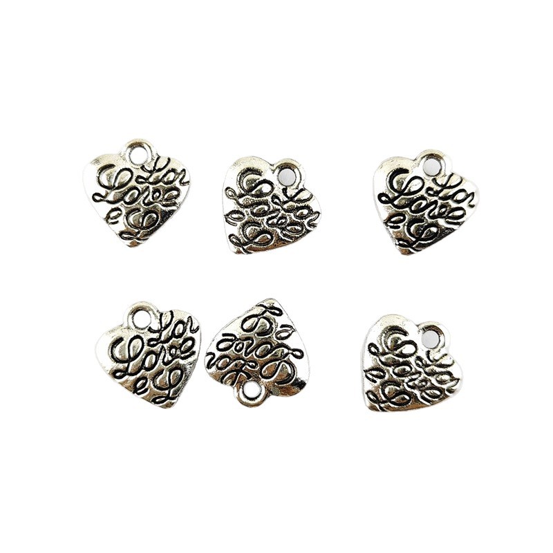 Colgantes de Aleación de Zinc en Forma de Corazón, chapado en color de plata, Bricolaje, 100PCs/Bolsa, Vendido por Bolsa