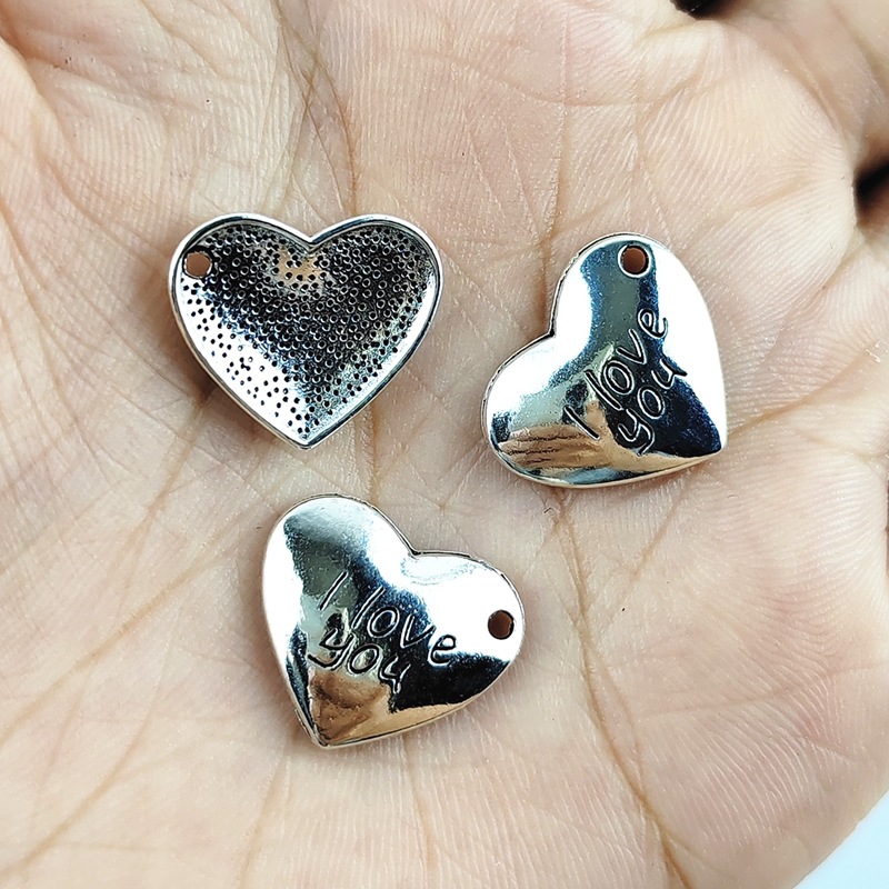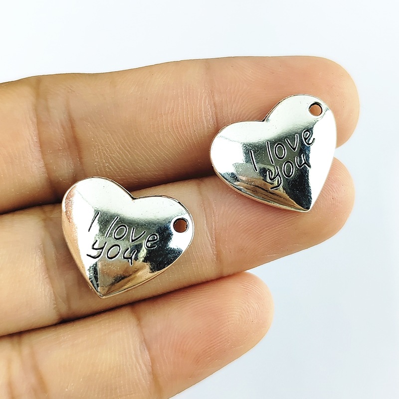 Colgantes de Aleación de Zinc en Forma de Corazón, chapado en color de plata, Bricolaje, 100PCs/Bolsa, Vendido por Bolsa