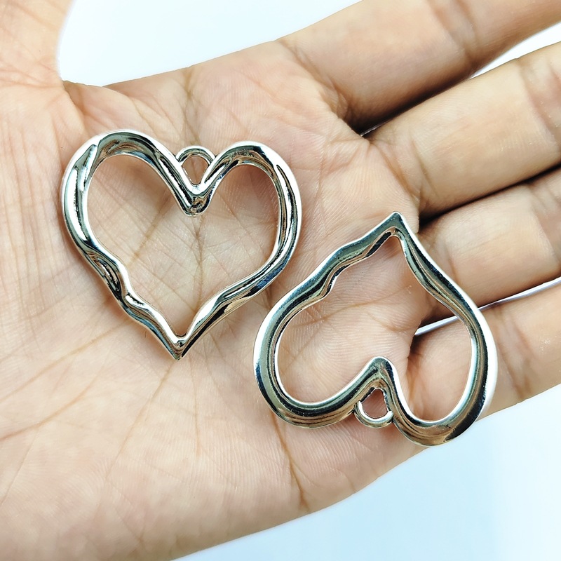 Colgantes de Aleación de Zinc en Forma de Corazón, chapado en color de plata, Bricolaje & hueco, 100PCs/Bolsa, Vendido por Bolsa