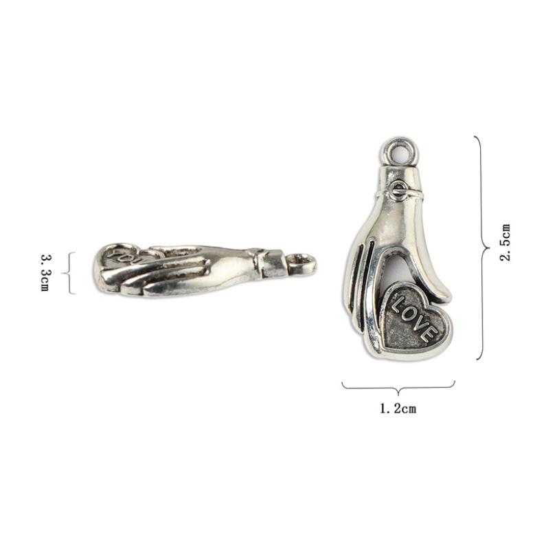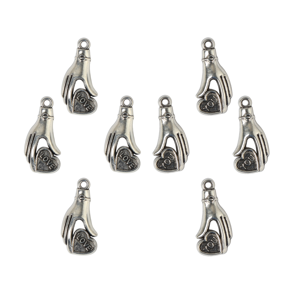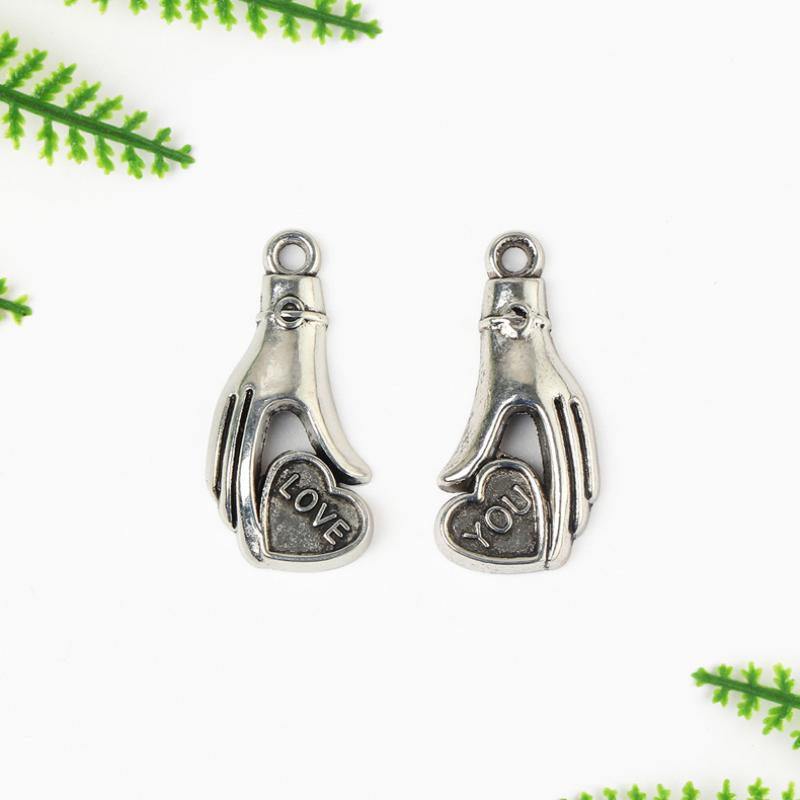 Colgantes de Aleación de Zinc en Forma de Corazón, Mano, chapado en color de plata, Bricolaje, plateado, 100PCs/Bolsa, Vendido por Bolsa