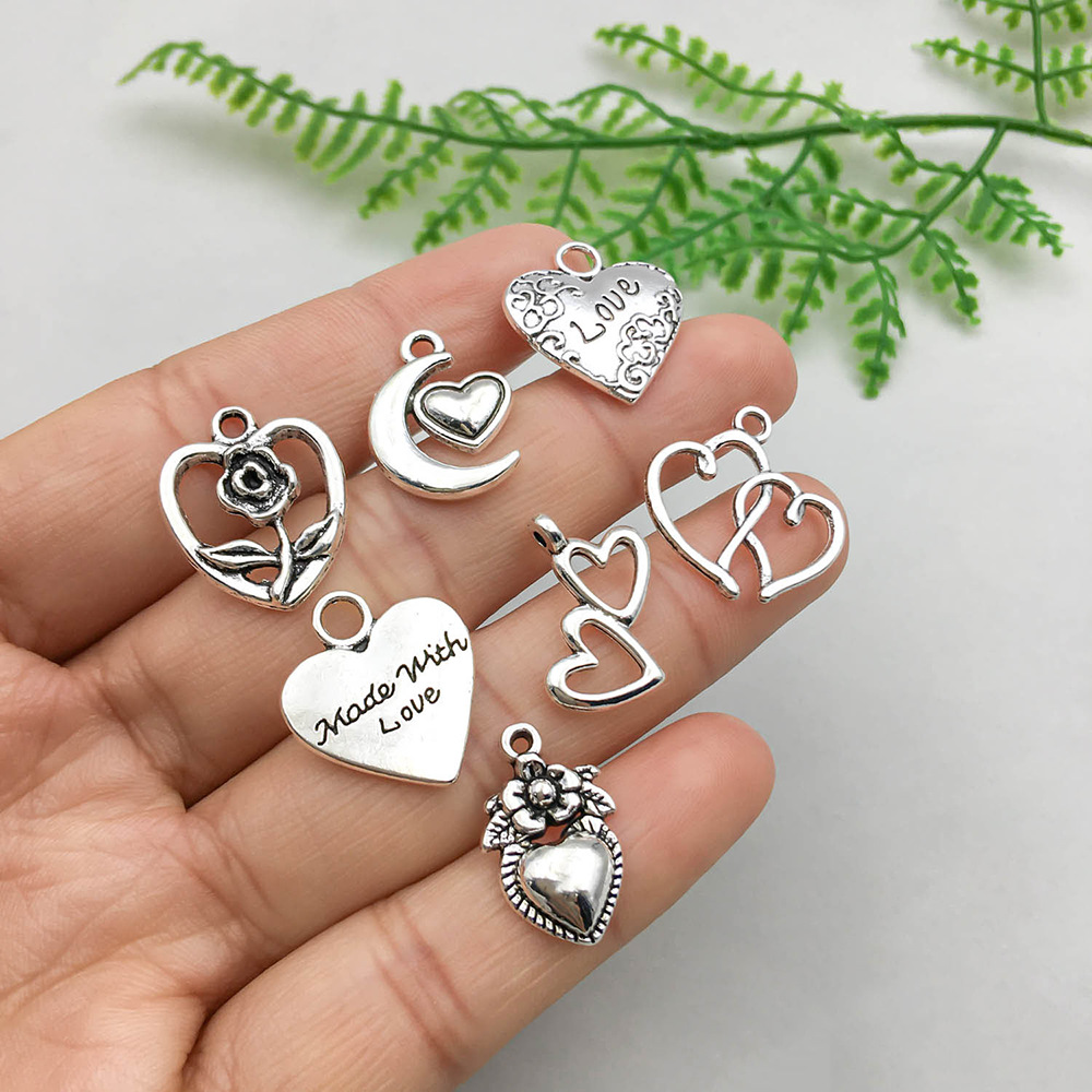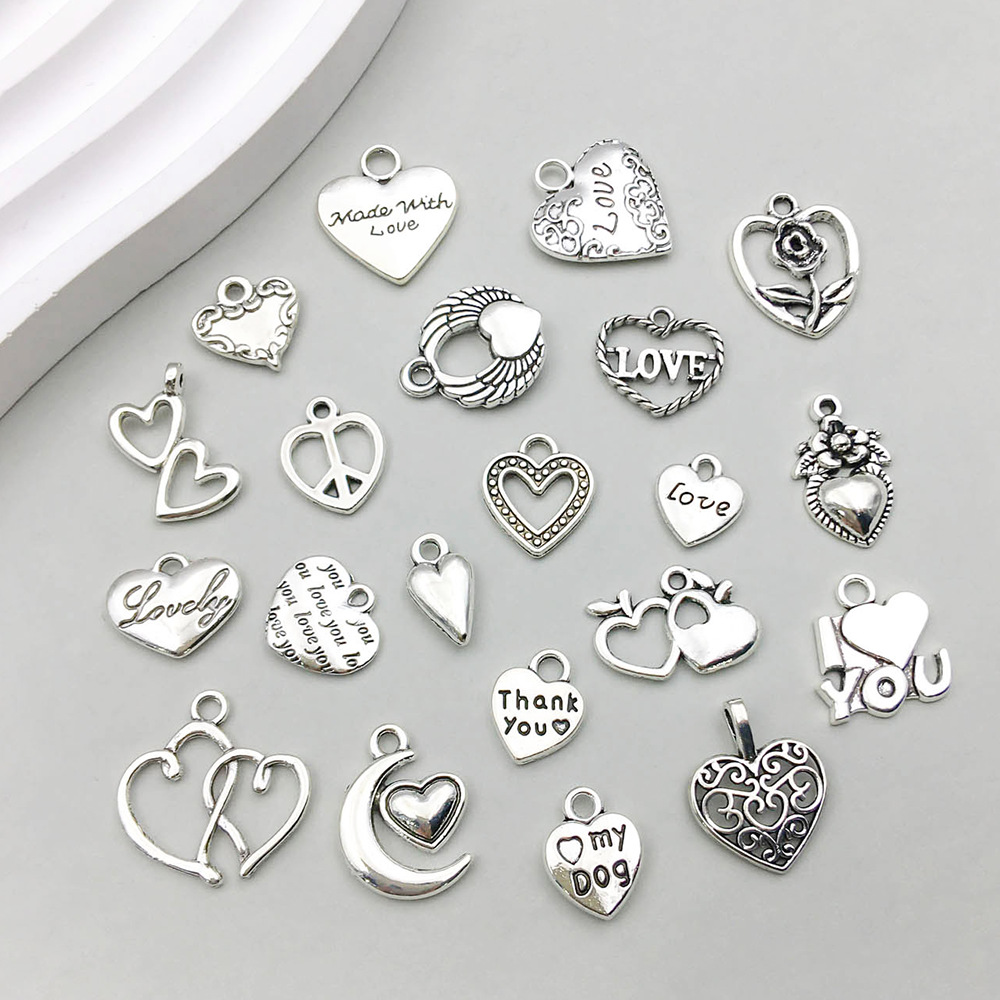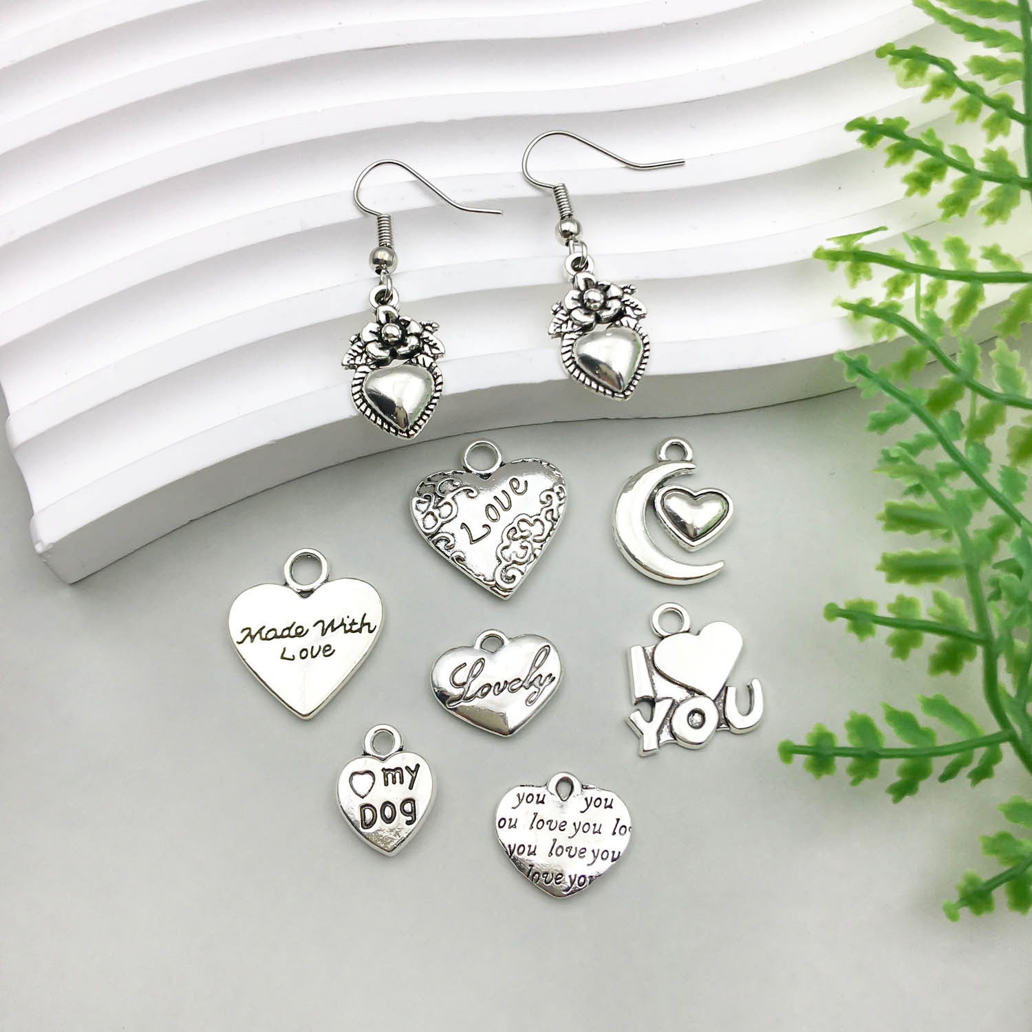 Colgantes de Aleación de Zinc en Forma de Corazón, chapado en color de plata antigua, Bricolaje & diferentes estilos para la opción, Vendido por UD