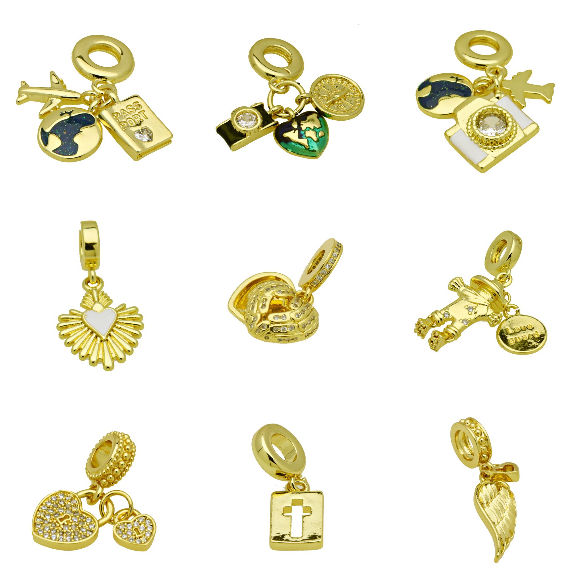 Colgantes de Europeo de latón, metal, chapado en color dorado, Bricolaje & diferentes estilos para la opción & micro arcilla de zirconia cúbica & esmalte, más colores para la opción, Vendido por UD