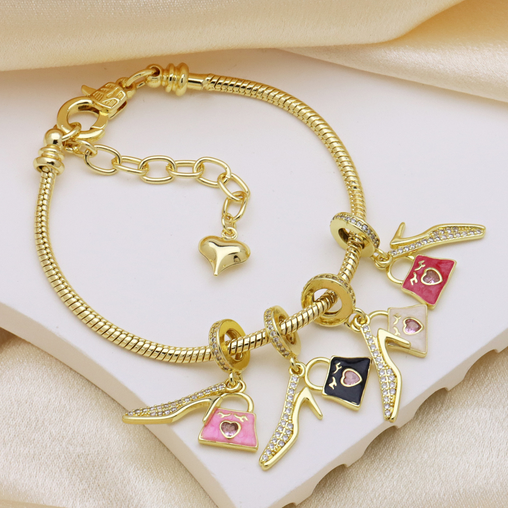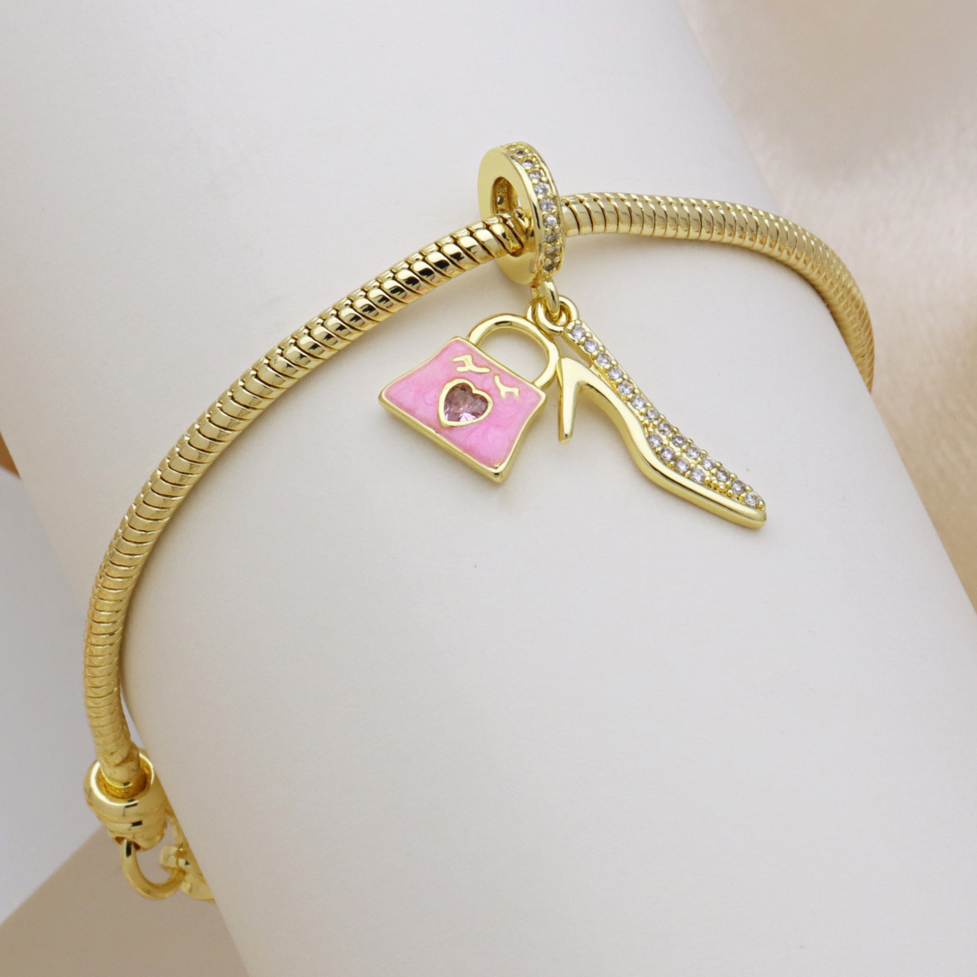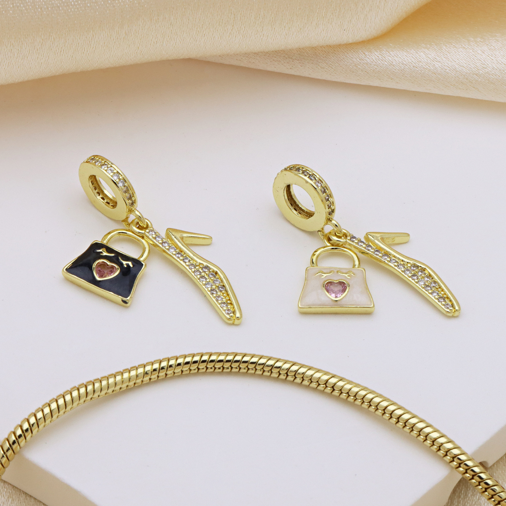 Colgantes de Europeo de latón, metal, Bolso de Mano, chapado en color dorado, Bricolaje & micro arcilla de zirconia cúbica & esmalte, más colores para la opción, 32mm, Vendido por UD