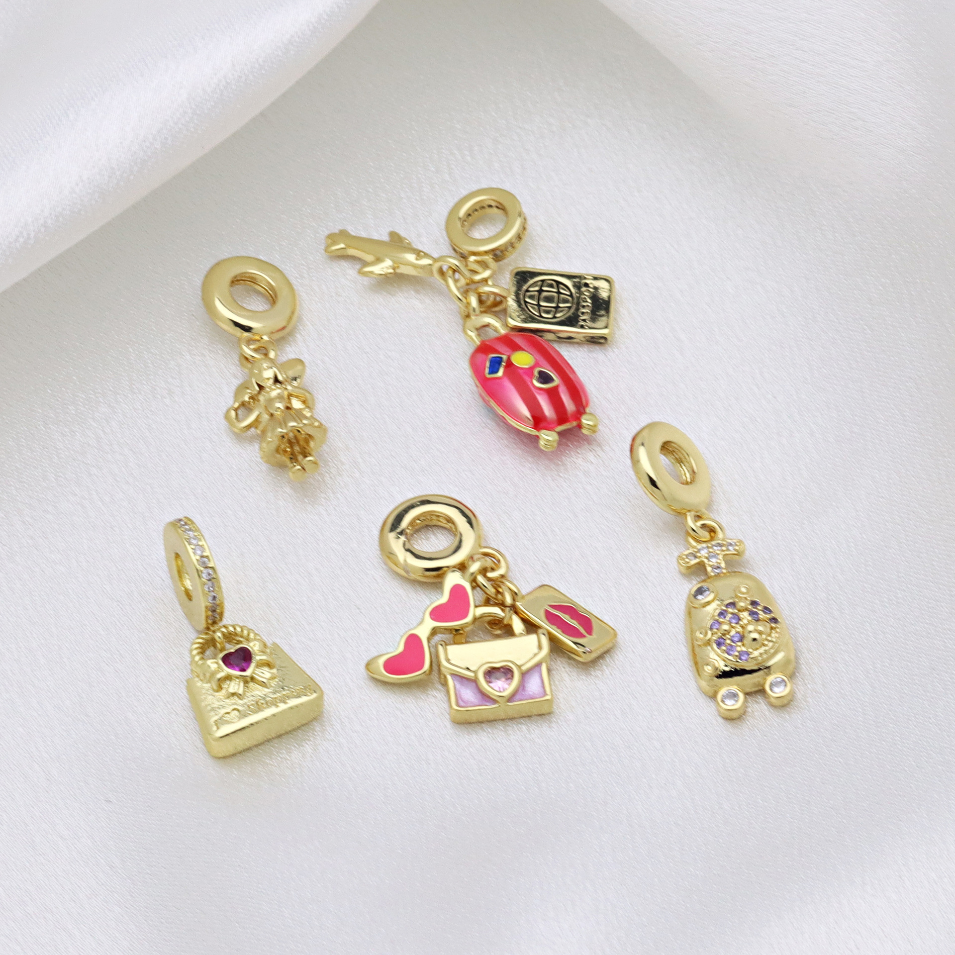 Colgantes de Europeo de latón, metal, chapado en color dorado, Bricolaje & diferentes estilos para la opción & micro arcilla de zirconia cúbica & esmalte, más colores para la opción, Vendido por UD