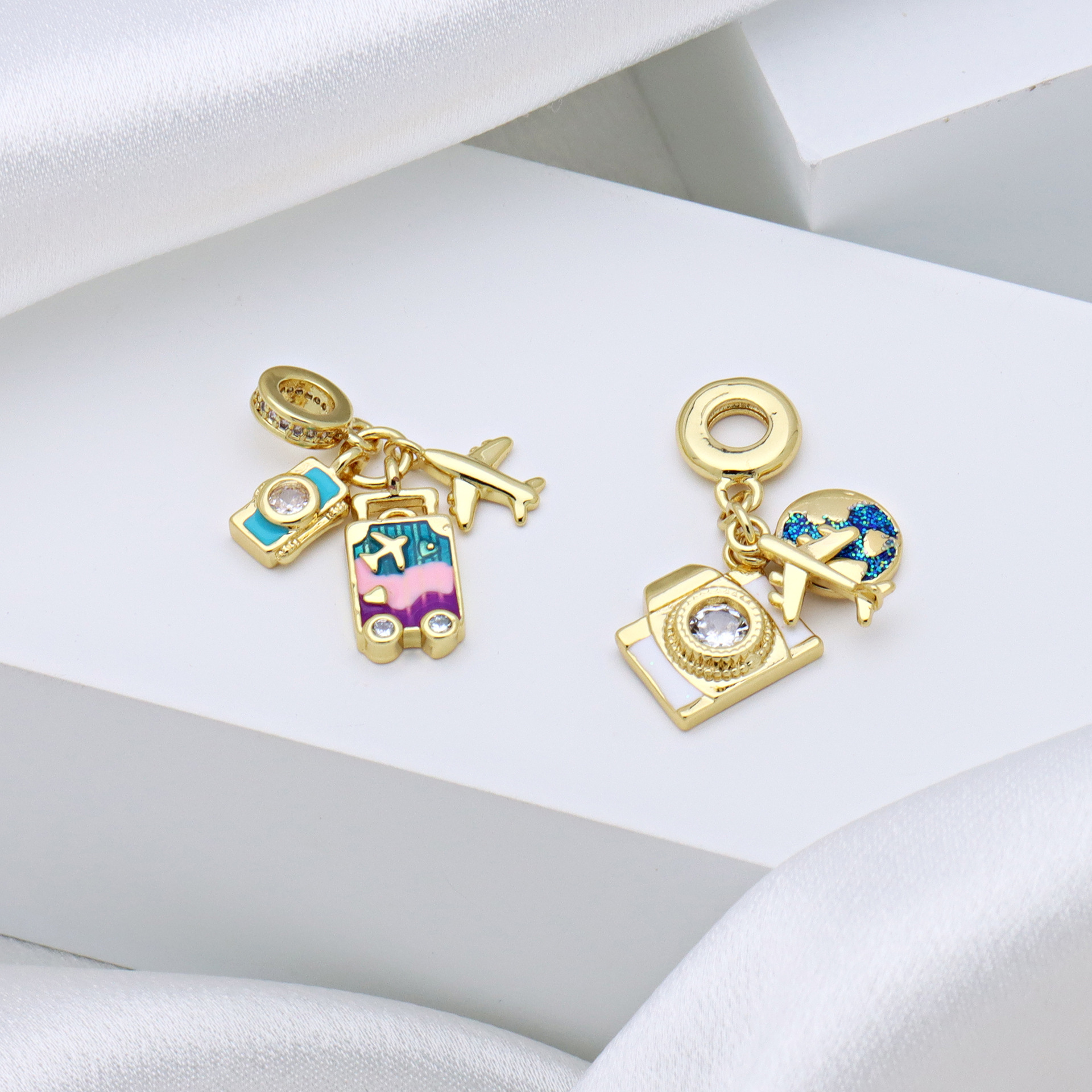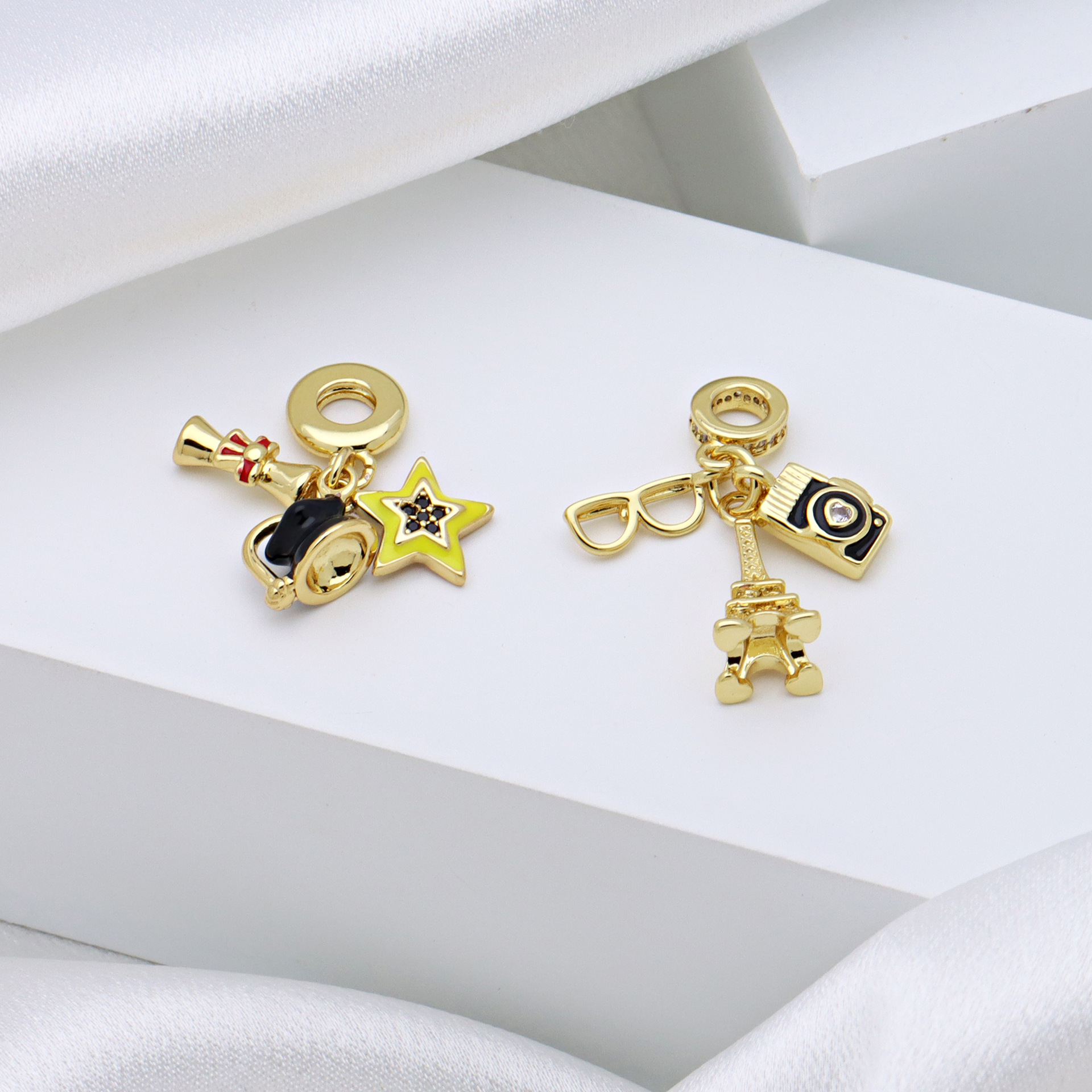 Colgantes de Europeo de latón, metal, chapado en color dorado, Bricolaje & diferentes estilos para la opción & micro arcilla de zirconia cúbica & esmalte, más colores para la opción, Vendido por UD