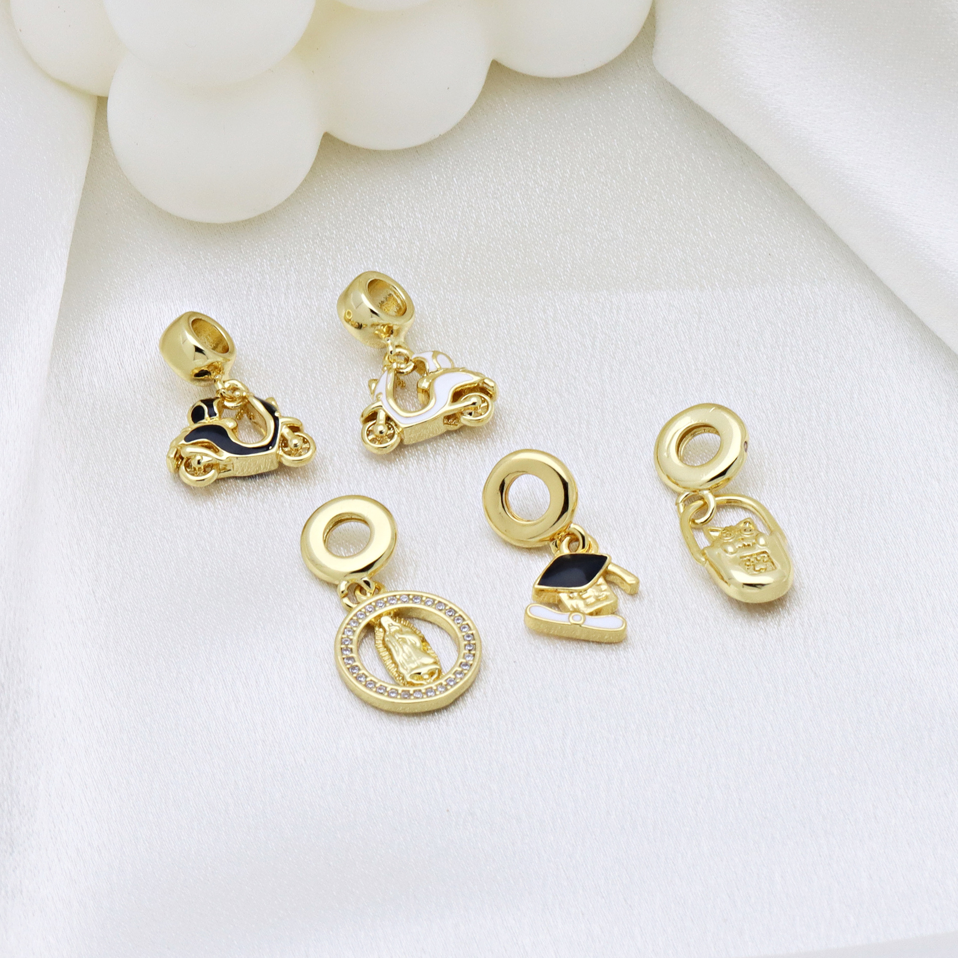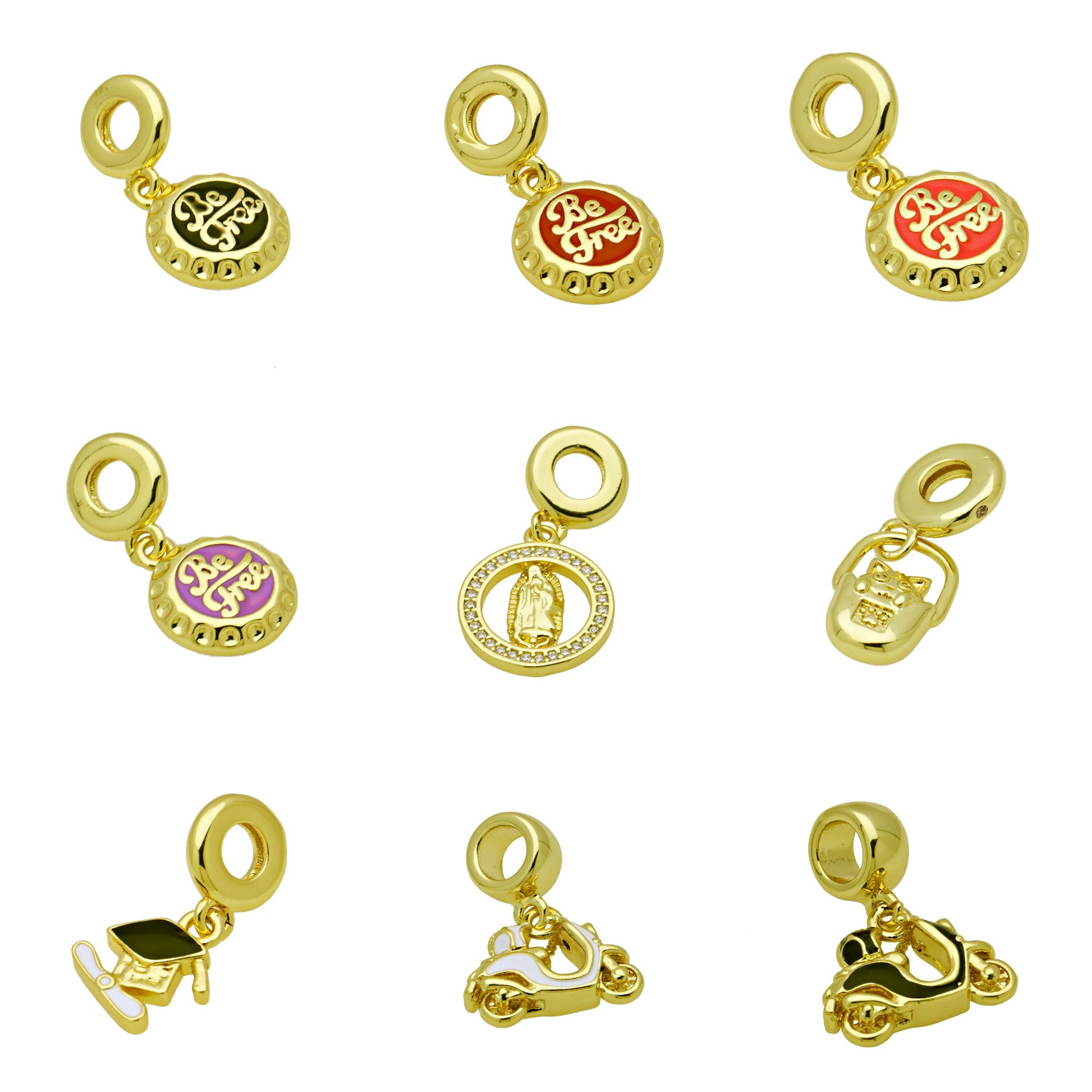 Colgantes de Europeo de latón, metal, chapado en color dorado, Bricolaje & diferentes estilos para la opción & micro arcilla de zirconia cúbica & esmalte, más colores para la opción, Vendido por UD