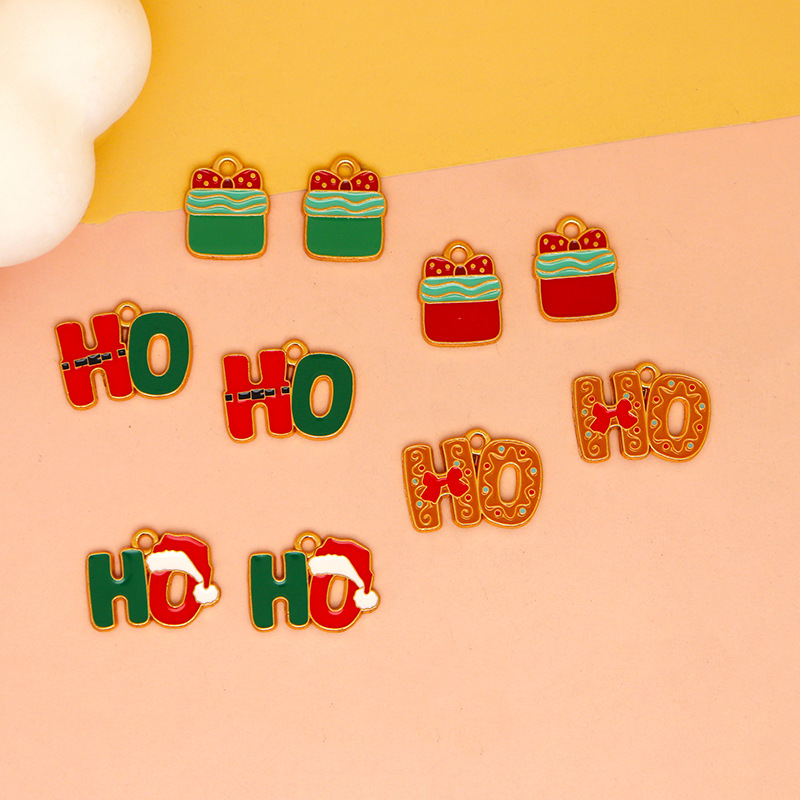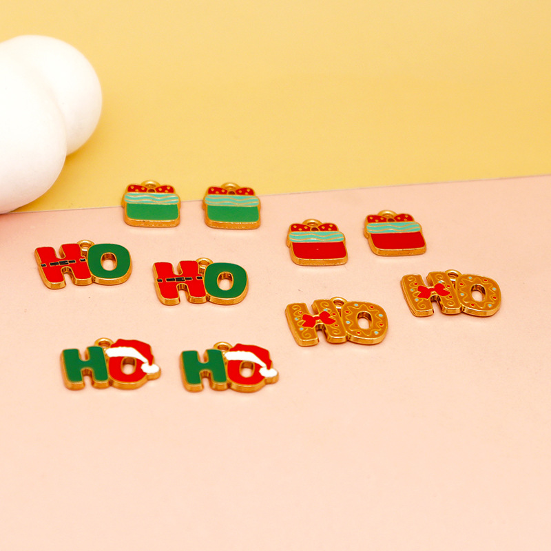 Colgantes de Navidad de aleación de cinc, aleación de zinc, Diseño de Navidad & Bricolaje & diferentes estilos para la opción & esmalte, dorado, 10PCs/Bolsa, Vendido por Bolsa