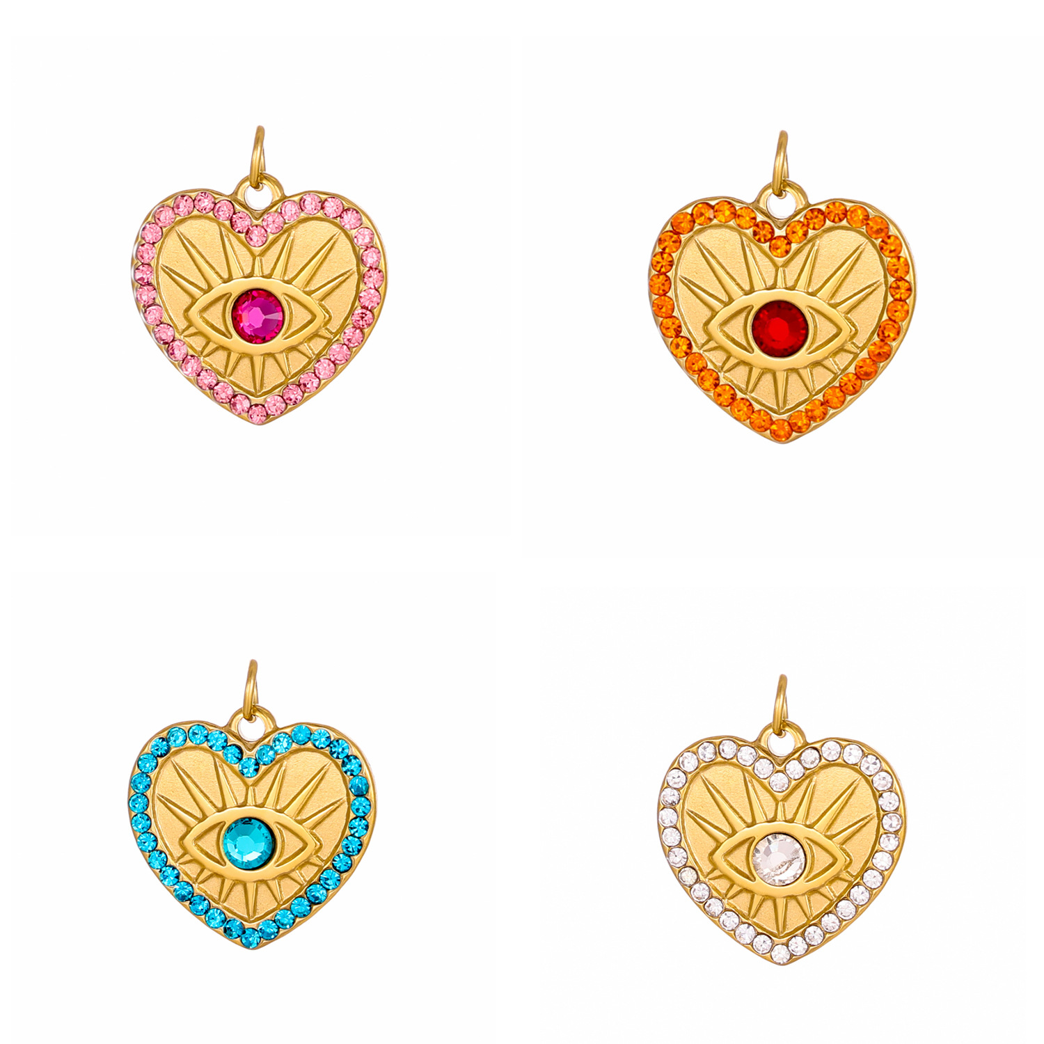 Colgantes de acero inoxidable de diamantes de imitación , acero inoxidable 304, Corazón, chapado en color dorado, Bricolaje & con diamantes de imitación, más colores para la opción, 10x9mm, Vendido por UD