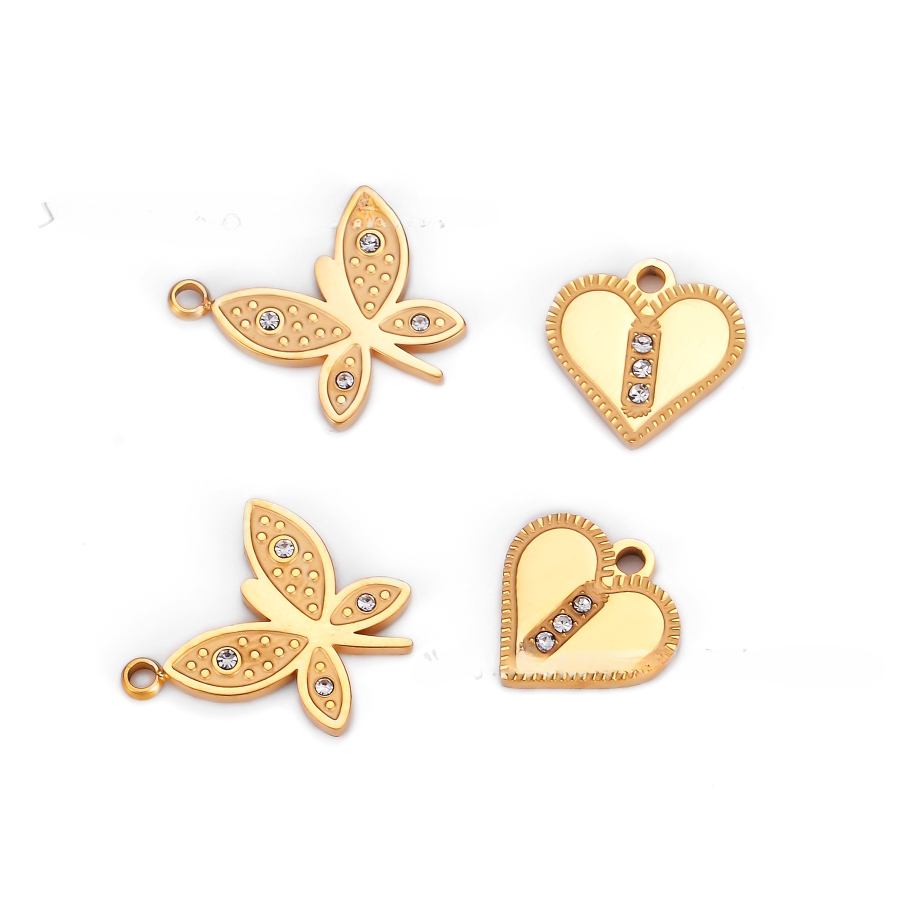 Colgantes de acero inoxidable de diamantes de imitación , acero inoxidable 304, chapado en color dorado, Bricolaje & con diamantes de imitación, más colores para la opción, 5PCs/Bolsa, Vendido por Bolsa