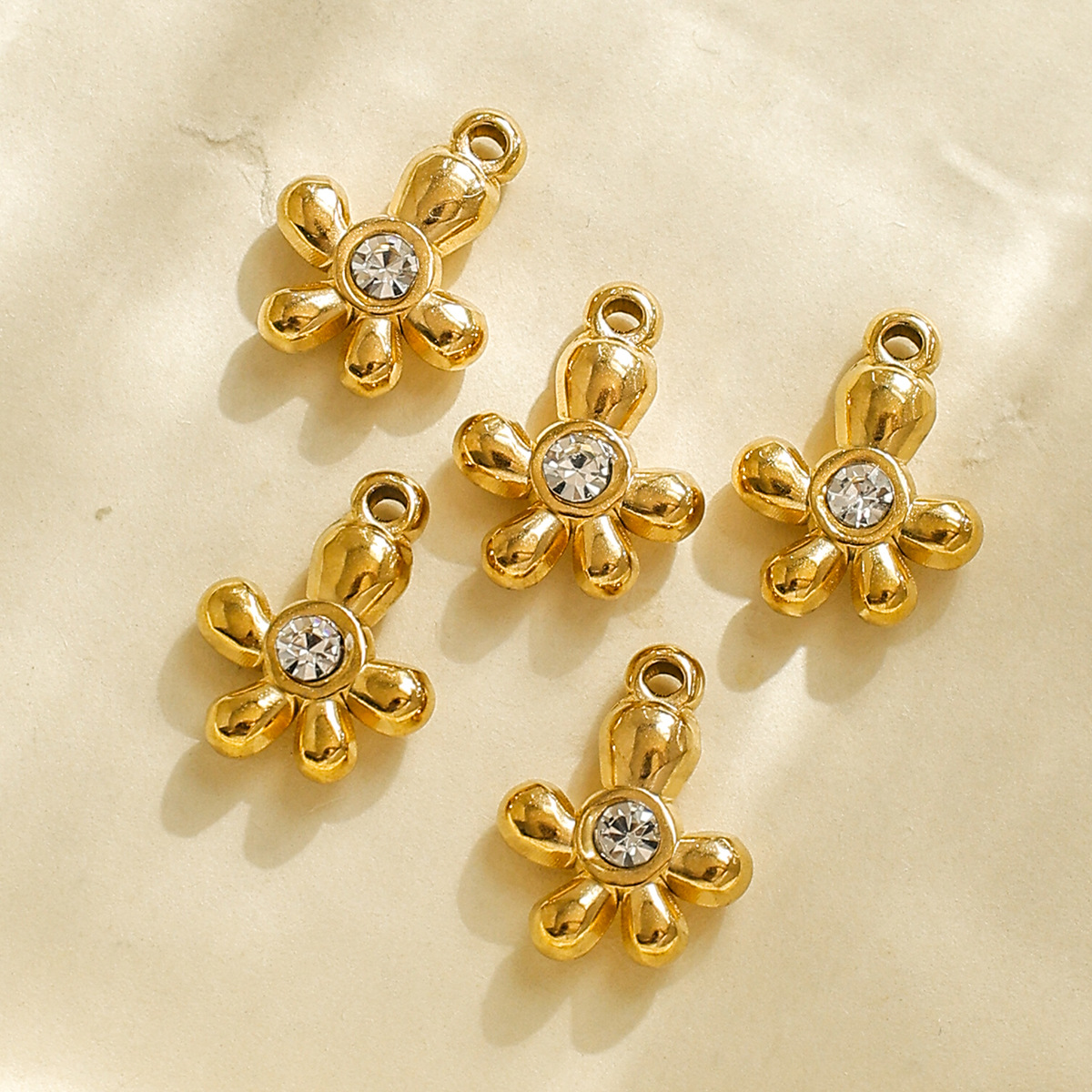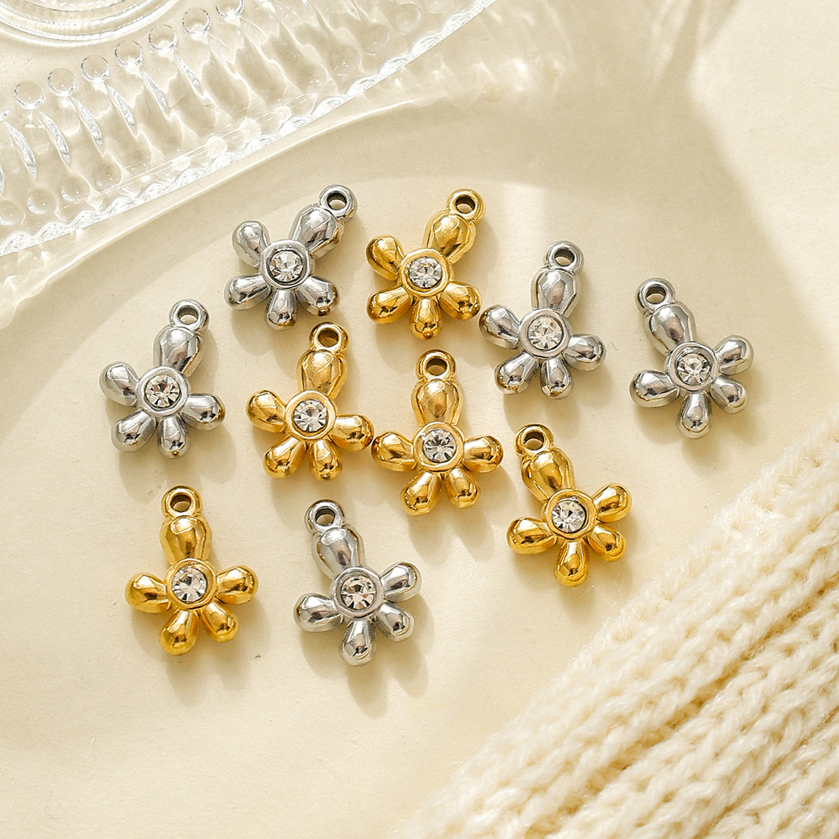 Colgantes de acero inoxidable de diamantes de imitación , acero inoxidable 304, Flor, chapado, Bricolaje & con diamantes de imitación, más colores para la opción, 10PCs/Bolsa, Vendido por Bolsa